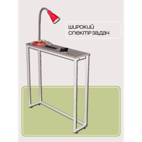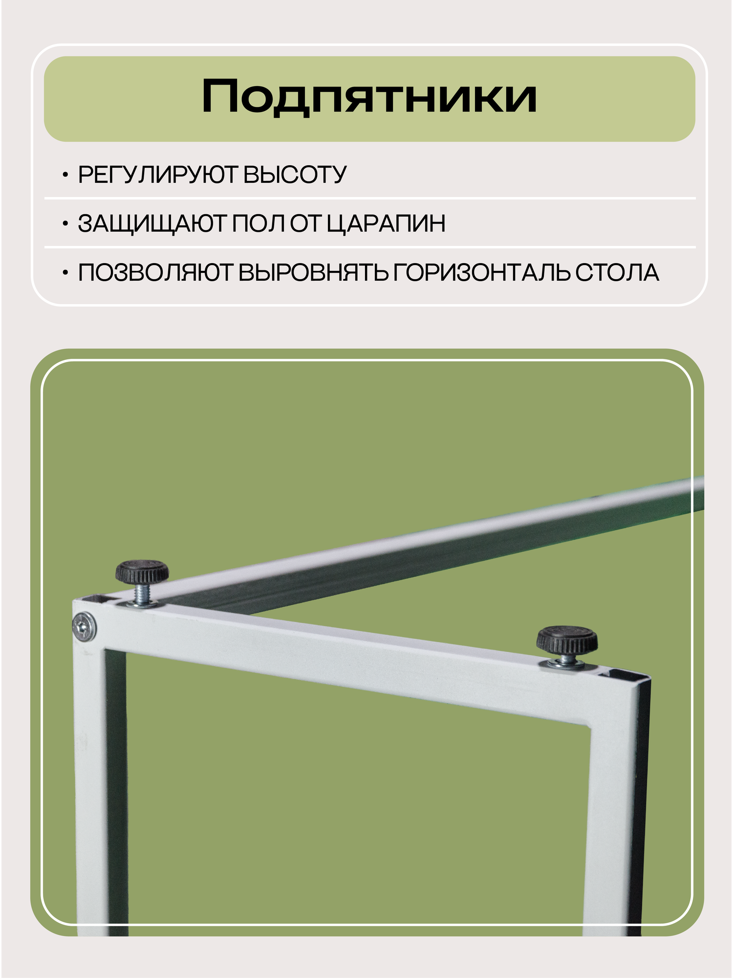 Туалетный столик - это элегантный и практичный консольный столик, идеально подходящий для прихожей, спальной или узкого пространства. Он обладает стальным каркасом с регулируемыми ножками, что позволяет легко адаптировать его под любую поверхность. Цельнометаллическая конструкция обеспечивает надежность и долговечность, а полимерно-порошковая покраска защищает поверхность от царапин и повреждений. Столешница выполнена из ЛДСП, что делает ее прочной и легкой в уходе. Туалетный столик - отличный выбор для тех, кто ценит функциональность и стиль в своем интерьере.
