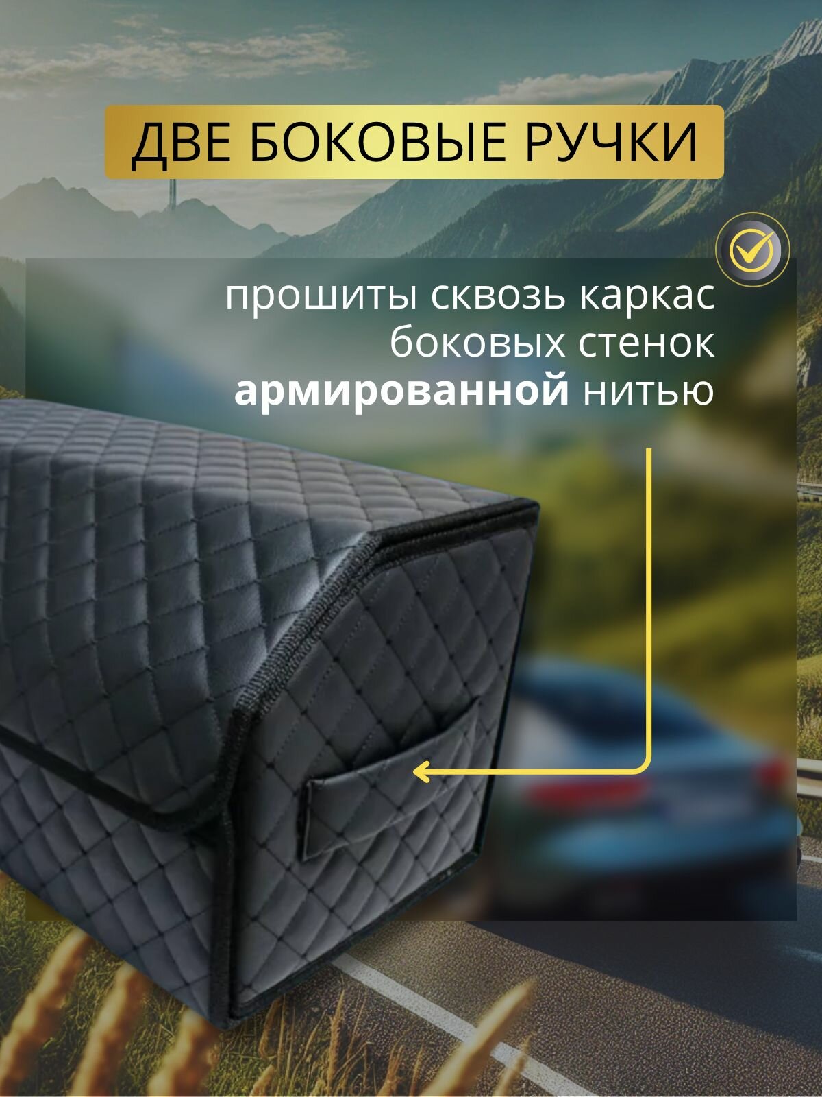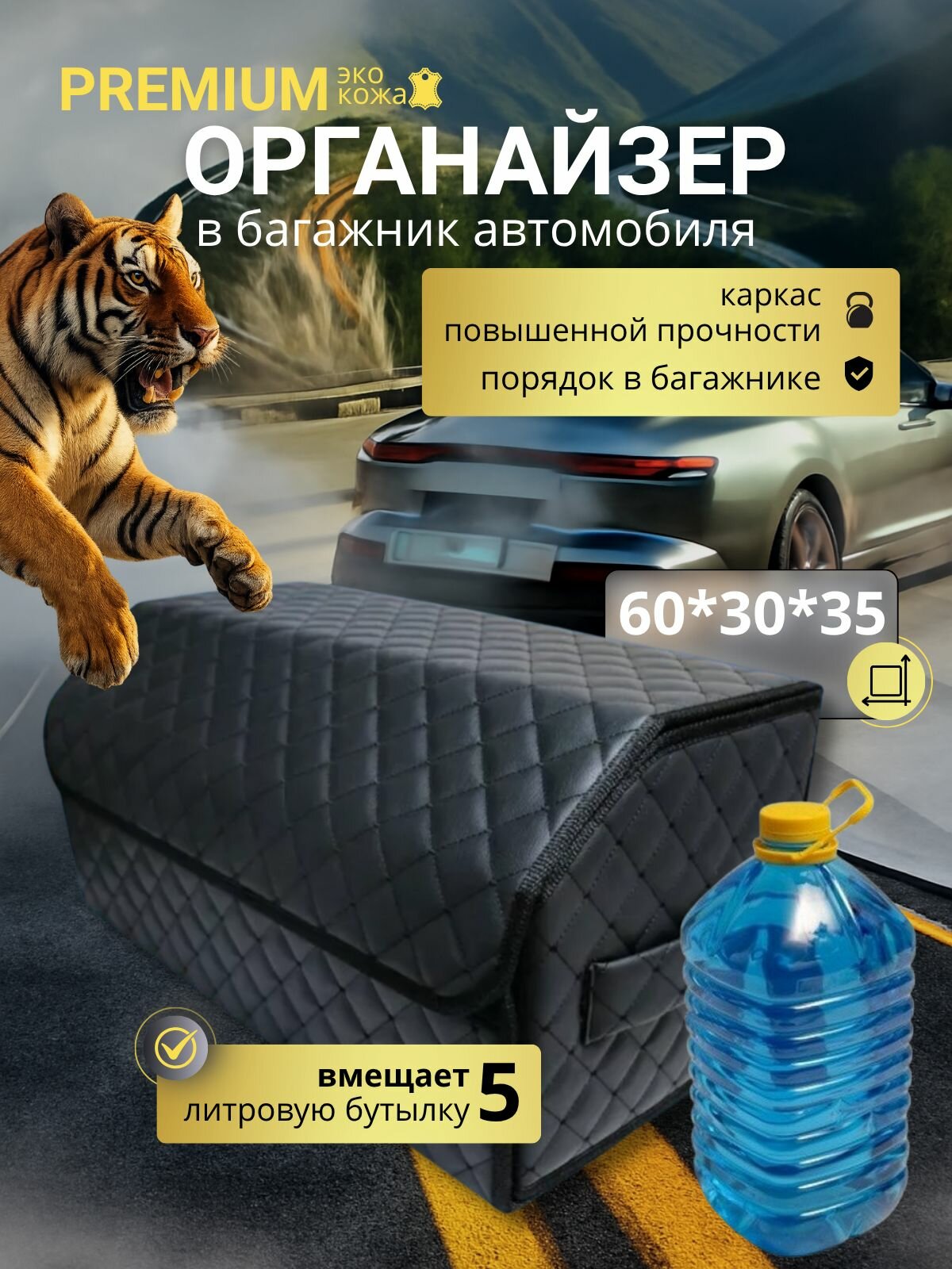 Высокий органайзер автомобильный в багажник, 60*30*35 см, рисунок сложный квадрат черный/ строчка чёрная.: сравнение цен, характеристики, фото, актуальное наличие и цены.