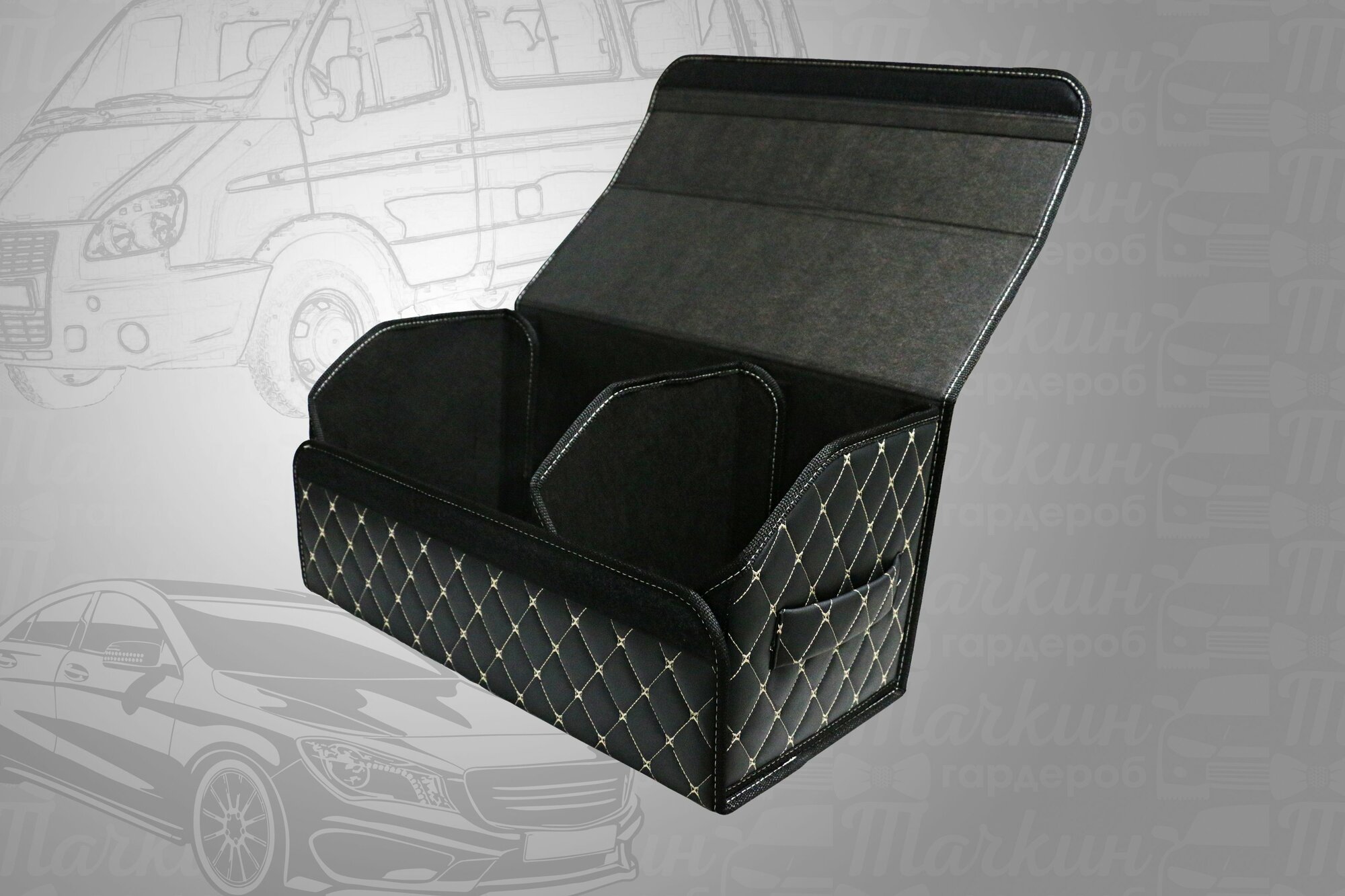 Высокий органайзер для автомобиля в багажник, 60*30*35 см, рисунок фигурный ромб черный/строчка бежевая/ окантовка чёрная.: сравнение цен, характеристики, фото, актуальное наличие и цены.