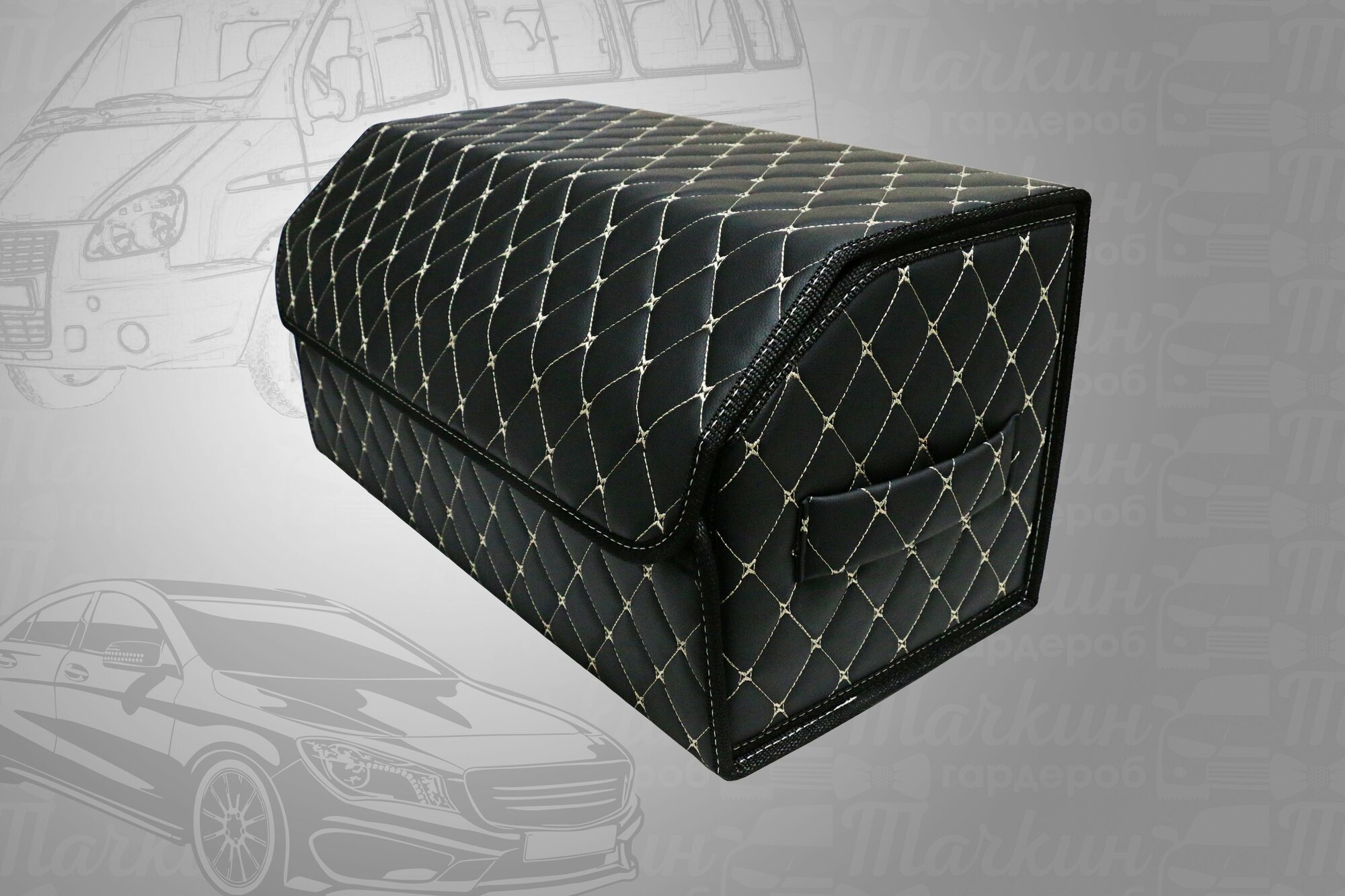 Купить Высокий органайзер для автомобиля в багажник, 60*30*35 см, рисунок фигурный ромб черный/строчка бежевая/ окантовка чёрная. с доставкой по всей России.