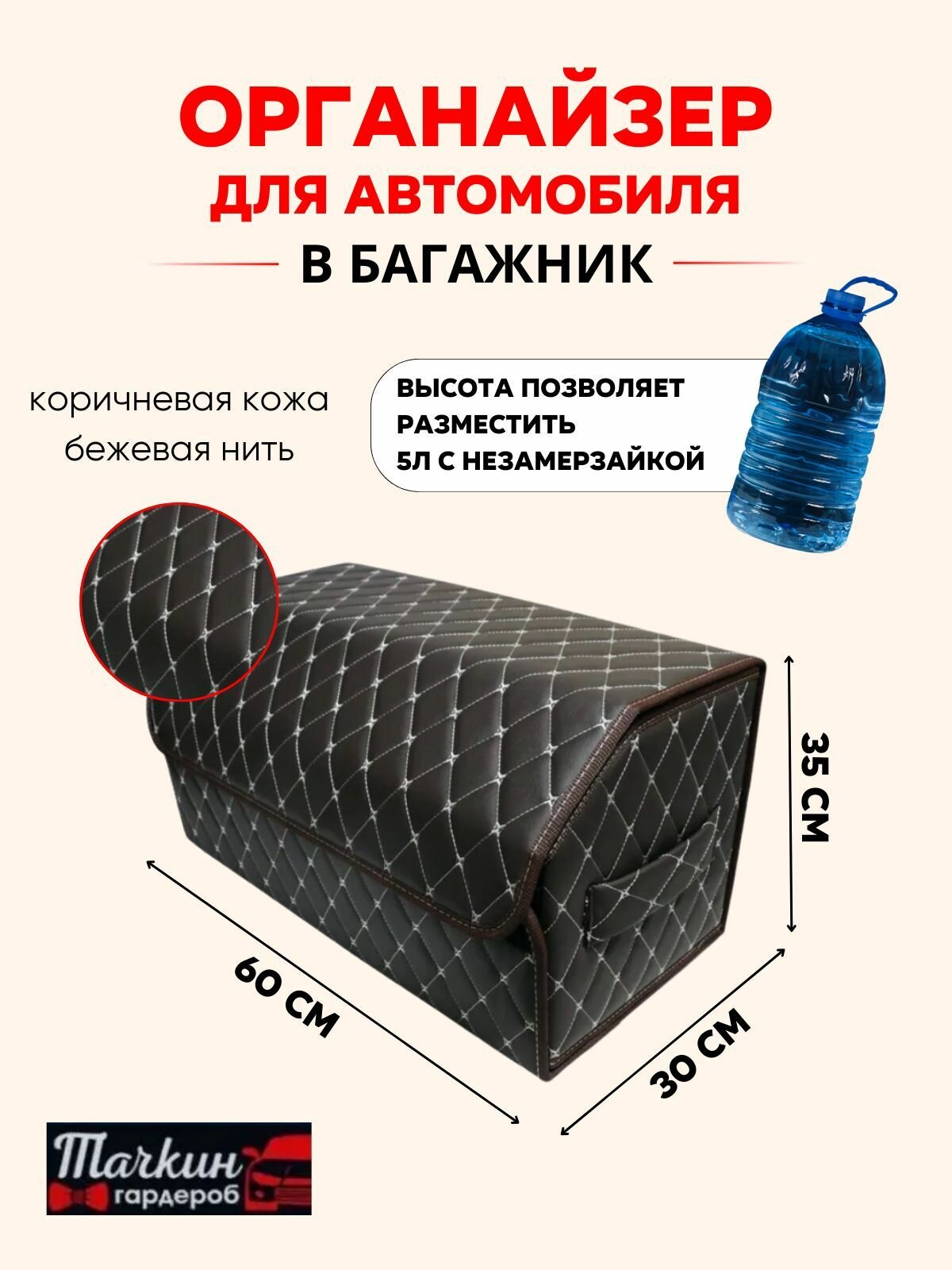 Высокий органайзер для автомобиля в багажник, 60*30*35 см, рисунок фигурный ромб коричневый/ строчка бежевая.: сравнение цен, характеристики, фото, актуальное наличие и цены.