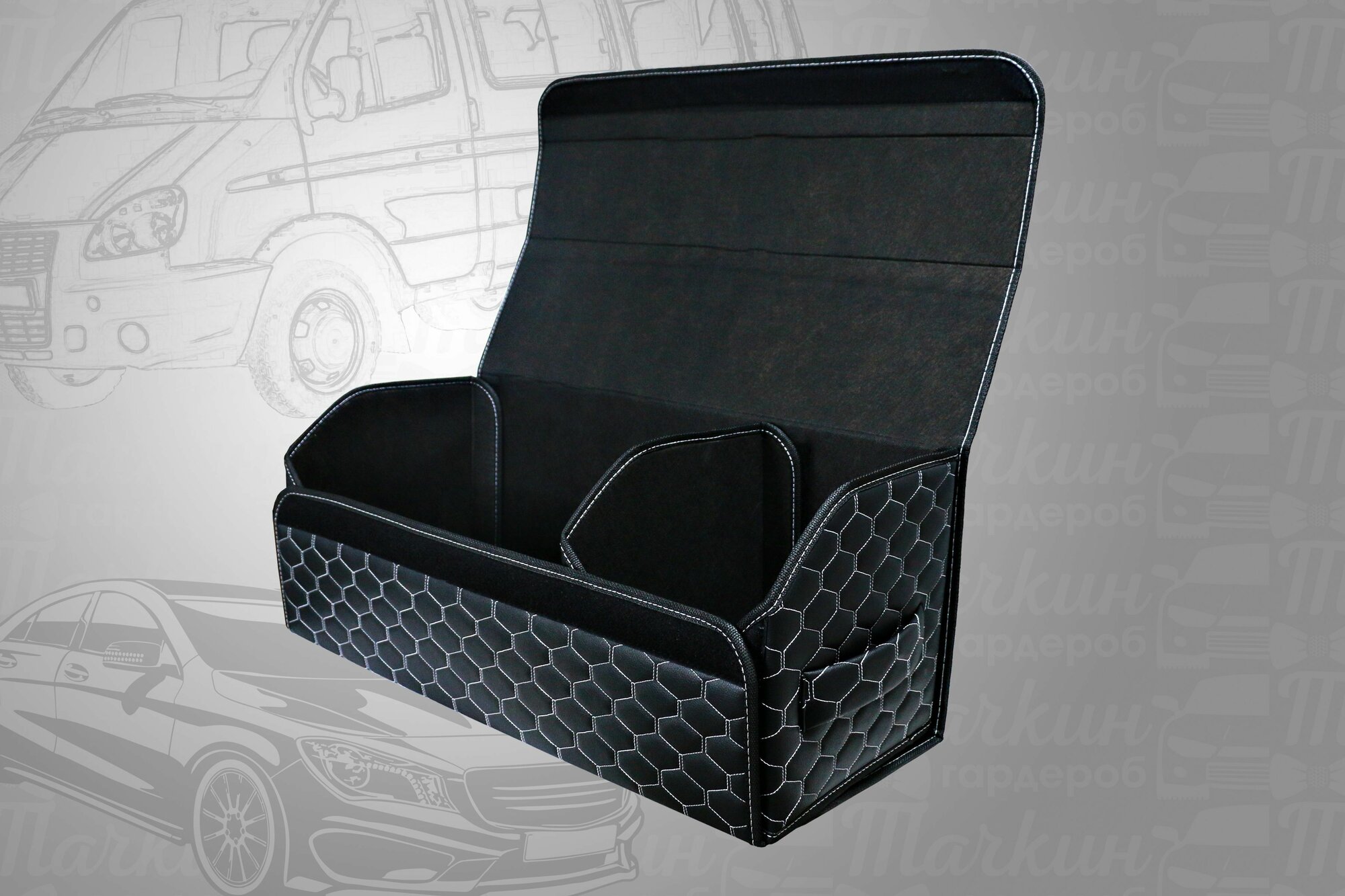 Высокий органайзер в багажник, 70*30*35 см, рисунок сота черная/ строчка белая.: сравнение цен, характеристики, фото, актуальное наличие и цены.