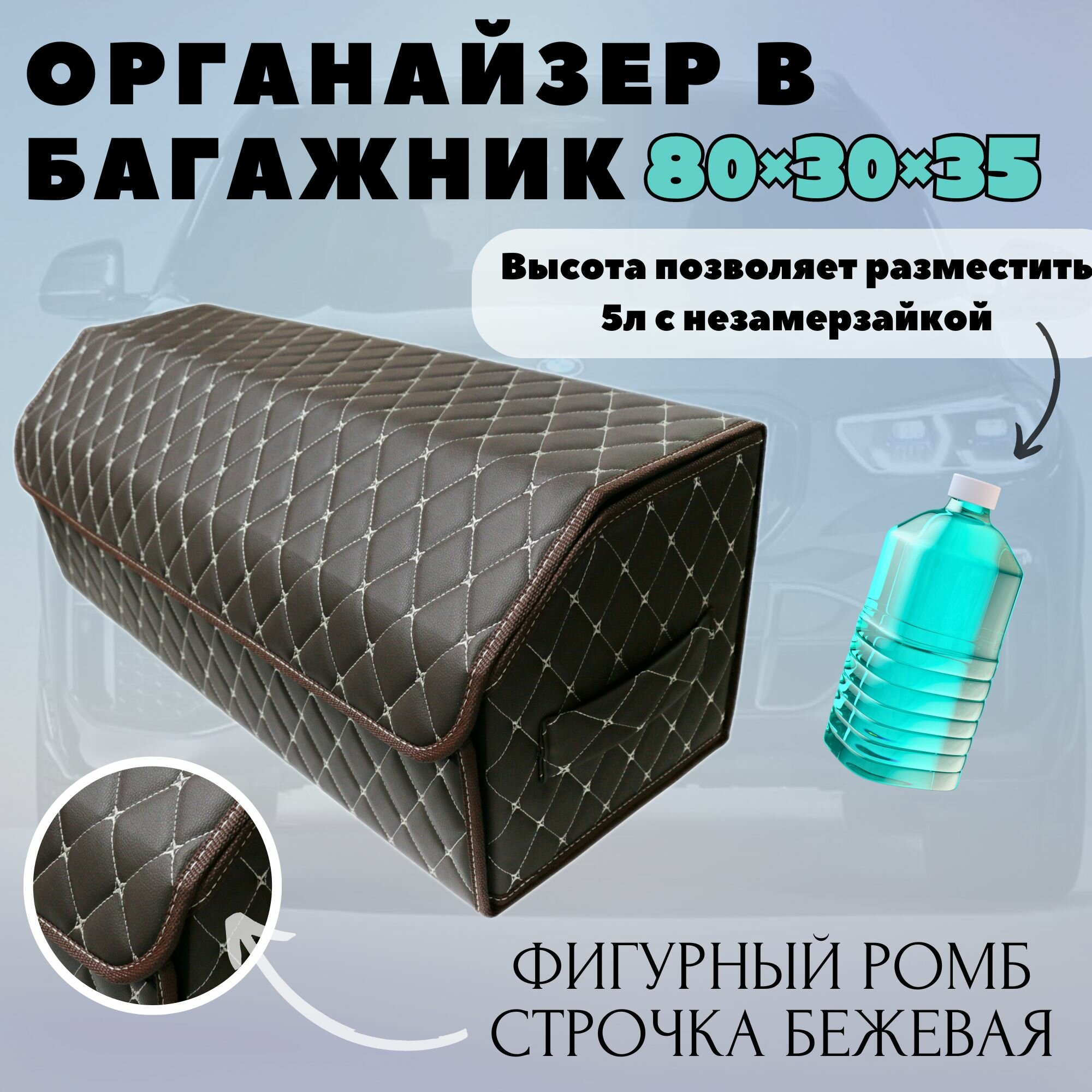 Высокий органайзер в машину в багажник, 80*30*35 см, рисунок фигурный ромб коричневый/ строчка бежевая.: сравнение цен, характеристики, фото, актуальное наличие и цены.