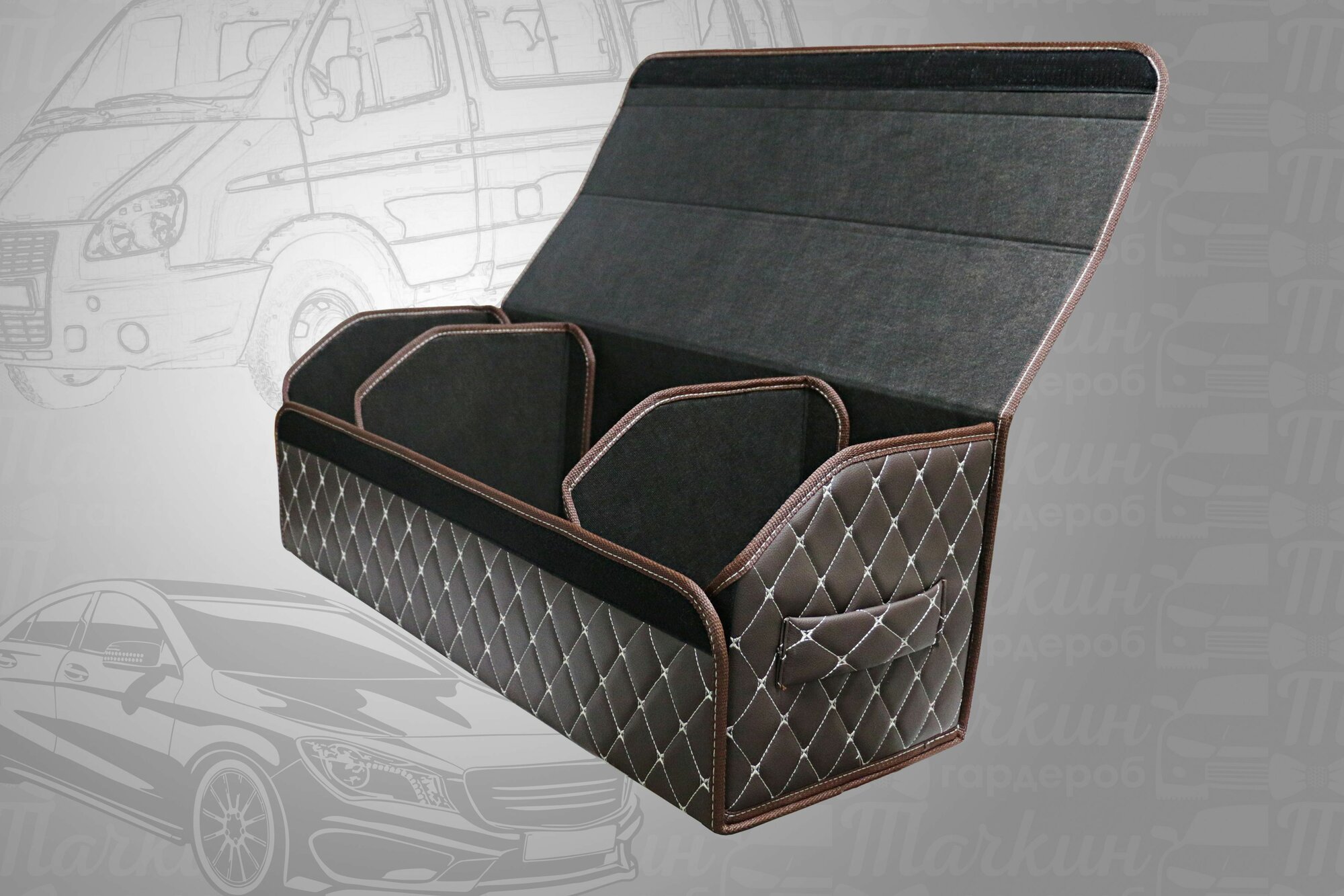 Купить Высокий органайзер в машину в багажник, 80*30*35 см, рисунок фигурный ромб коричневый/ строчка бежевая. с доставкой по всей России.