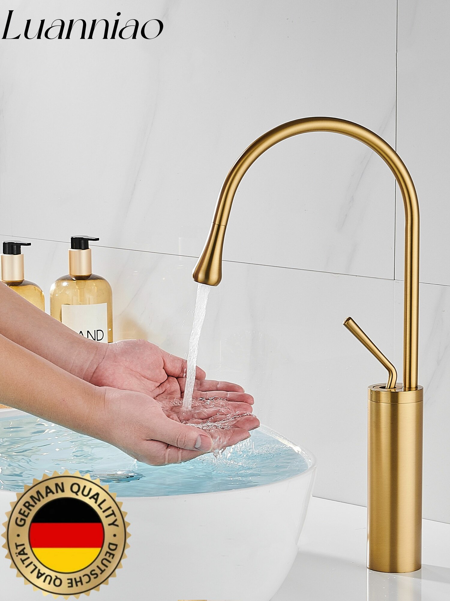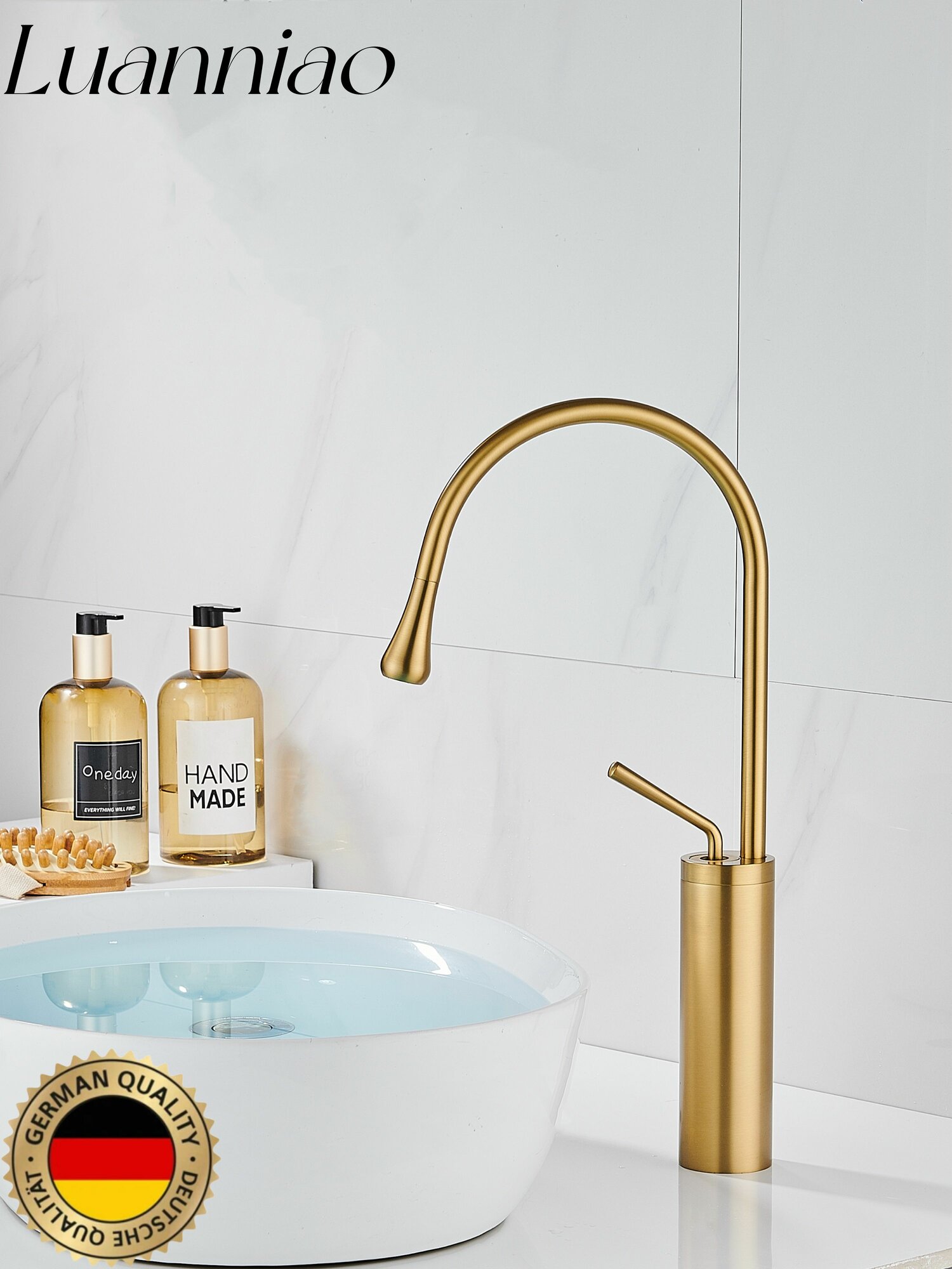 Высокий смеситель для накладной раковины, из латуни, золотой: сравнение цен, характеристики, фото, актуальное наличие и цены.