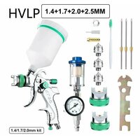 Пистолет-распылитель+1.4/1.7/2.0/2.5мм сопло, распылительный колпачок, распылительная игла + пластиковая капельница + маленький гаечный ключ + быстроразъемный соединитель + стаканчик для краски