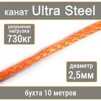 Высокопрочный синтетический канат UTX Ultra Steel из волокна UHMWPE (ультравысокомолекулярный полиэтилен), разрывная нагрузка не менее 730 кг.