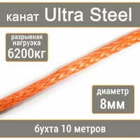 Высокопрочный синтетический канат UTX Ultra Steel из волокна UHMWPE (ультравысокомолекулярный полиэтилен), разрывная нагрузка не менее 6200 кг.