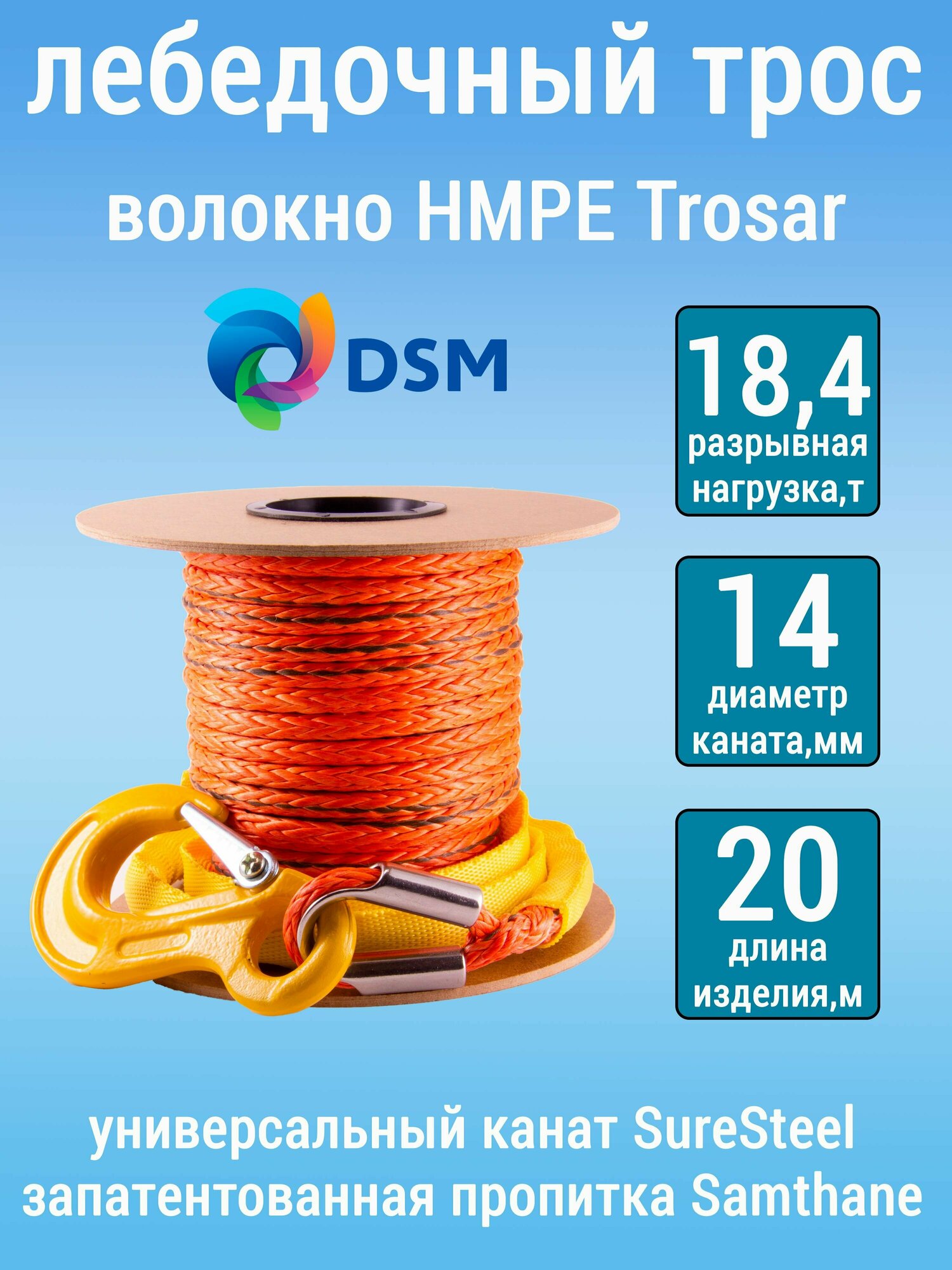 Высокопрочный синтетический канат UTX для лебедок, установленных на грузовых автомобилях и другой технике. Произведен из волокна HMPE Trosar 14мм компании DSM.