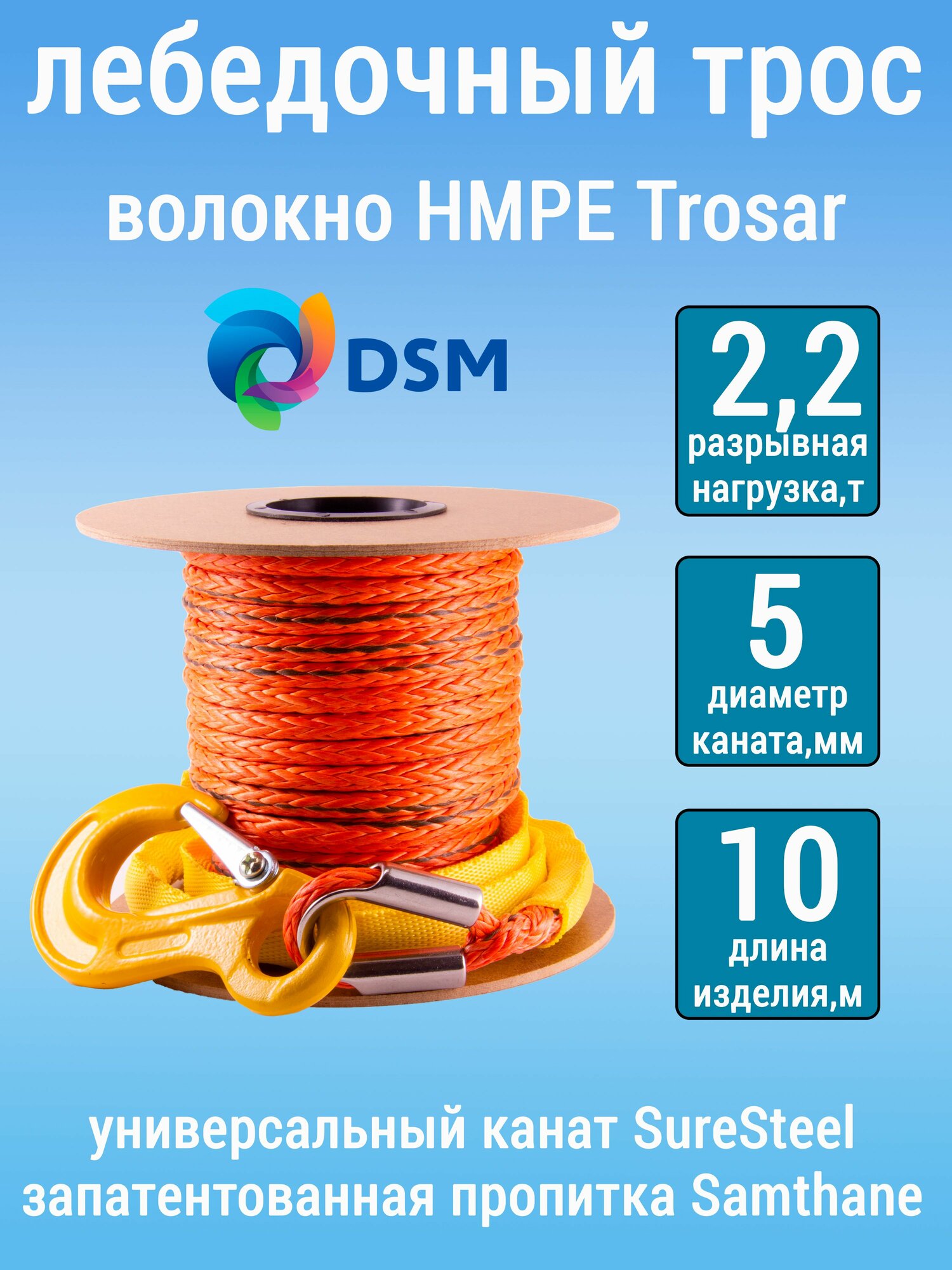 Высокопрочный синтетический трос UTX 2200кг на лебедку квадроцикла, снегохода, катера, мототехники, длина 10 метров: сравнение цен, характеристики, фото, актуальное наличие и цены.