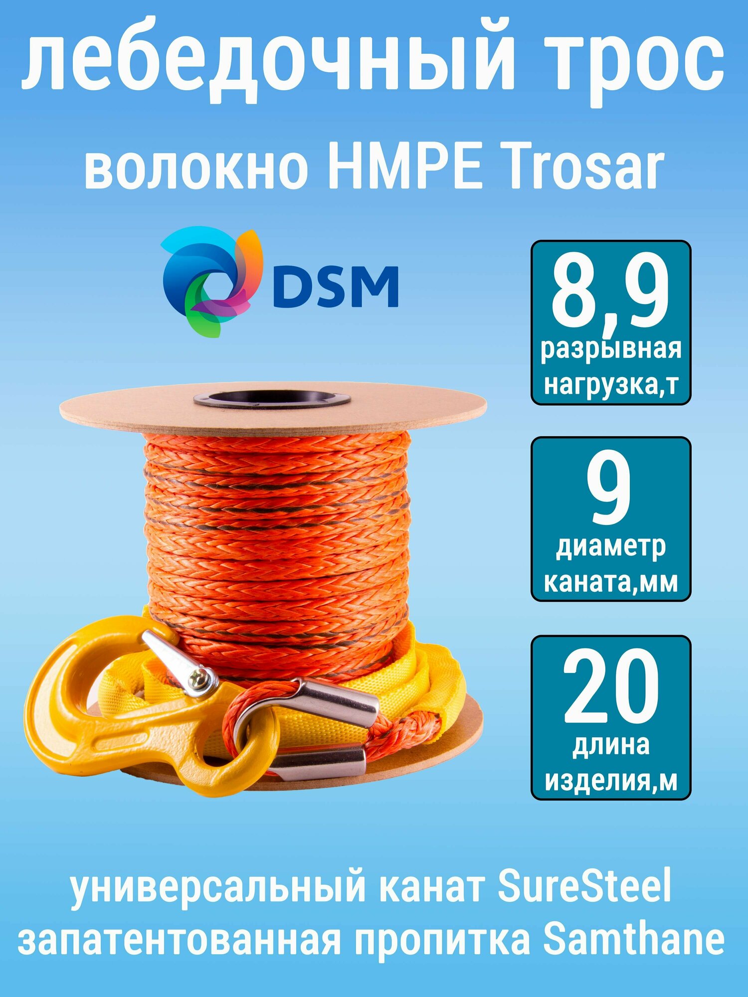 Высокопрочный синтетический трос UTX 8900кг на лебедку автомобиля, длина 20 метров