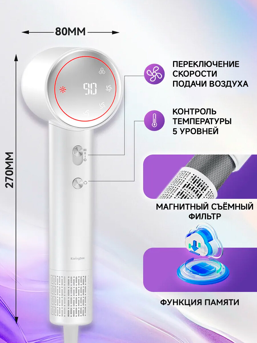 Высокоскоростной фен для волос профессиональный KaringBee HS01 белый: сравнение цен, характеристики, фото, актуальное наличие и цены.