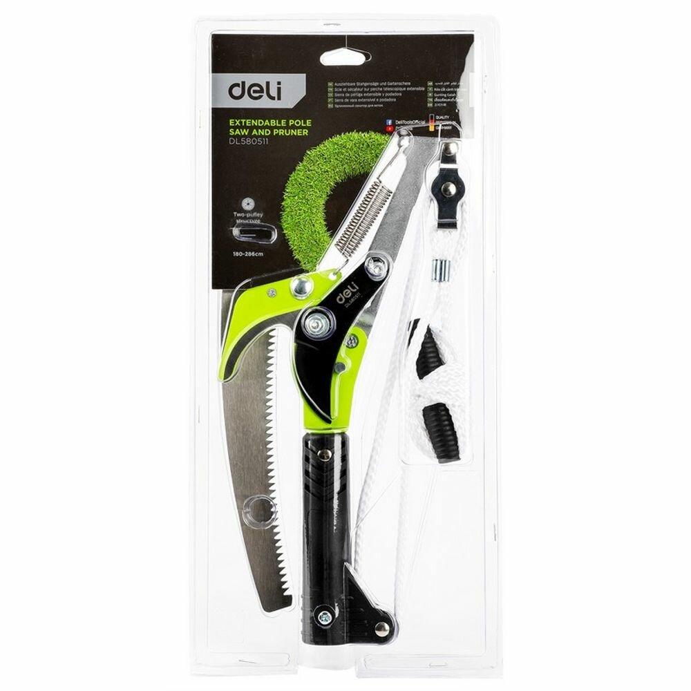 Купить Высоторез-сучкорез с секатором штанговый Deli DL580511 2 шкива, лезвие пилы 290 мм, сталь SK5, телес. с доставкой по всей России.
