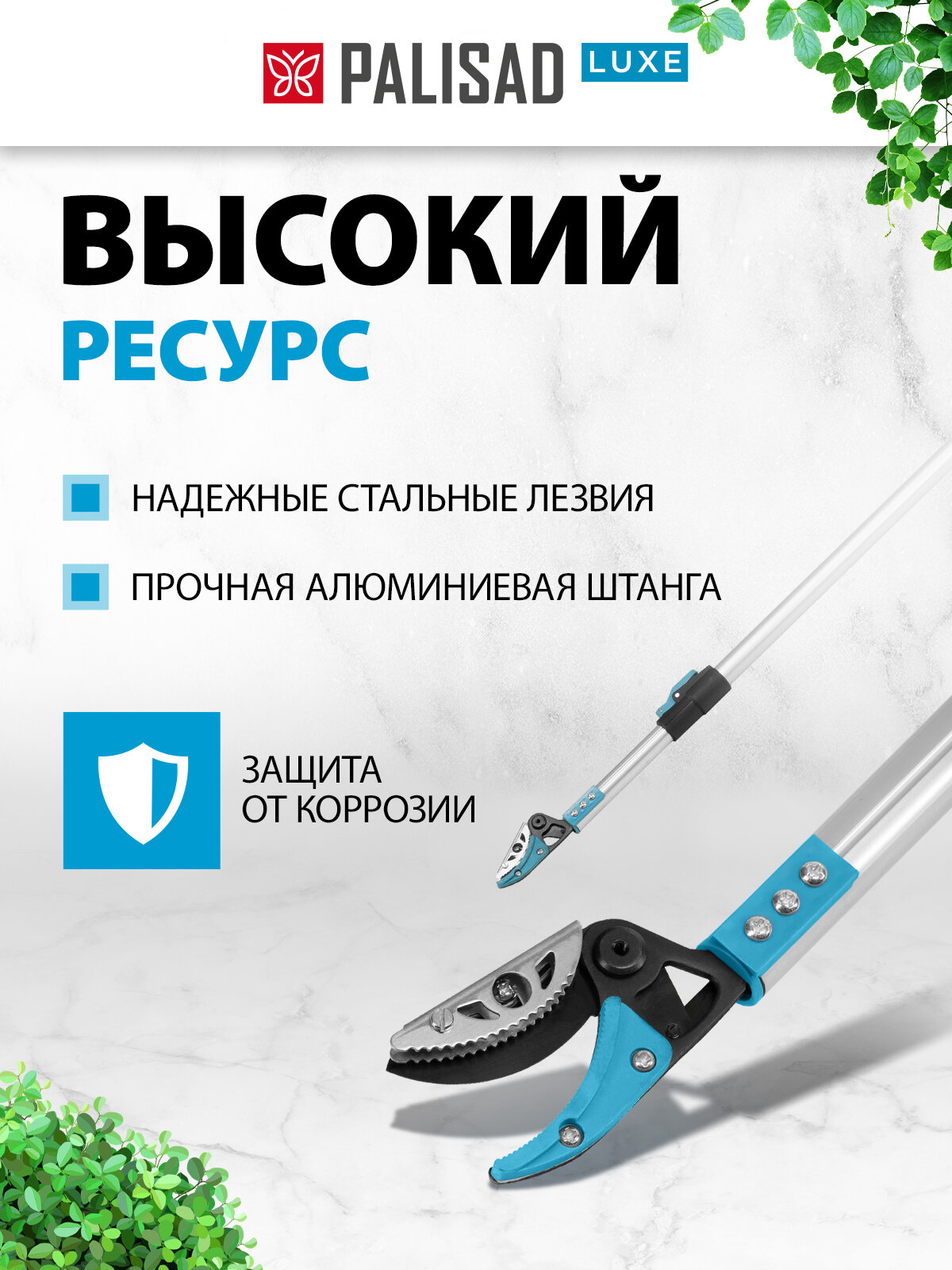 Телескопический высоторез Palisad LUXE 60599 с алюминиевой штангой длиной 1800-3000 мм и ПВХ-накладкой предназначен для обрезки живых веток и молодых побегов диаметром до 15 мм. Тефлоновое покрытие рабочего лезвия значительно облегчает рез. Инструмент пригодится для ухода за садовым участком.