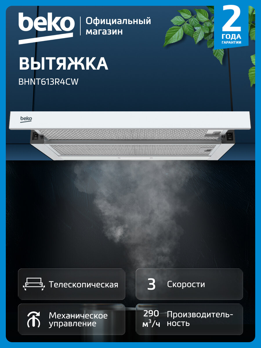 Вытяжка Beko BHNT613R4CW, телескопическая, угольный/жировой фильтр, белый: сравнение цен, характеристики, фото, актуальное наличие и цены.