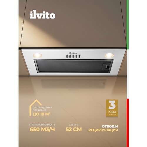 Купить Вытяжка для кухни встраиваемая ILVITO ICI Crespino BB 560, встраиваемая, 52 см, кухонная вытяжка, вытяжка на кухню с доставкой по всей России.
