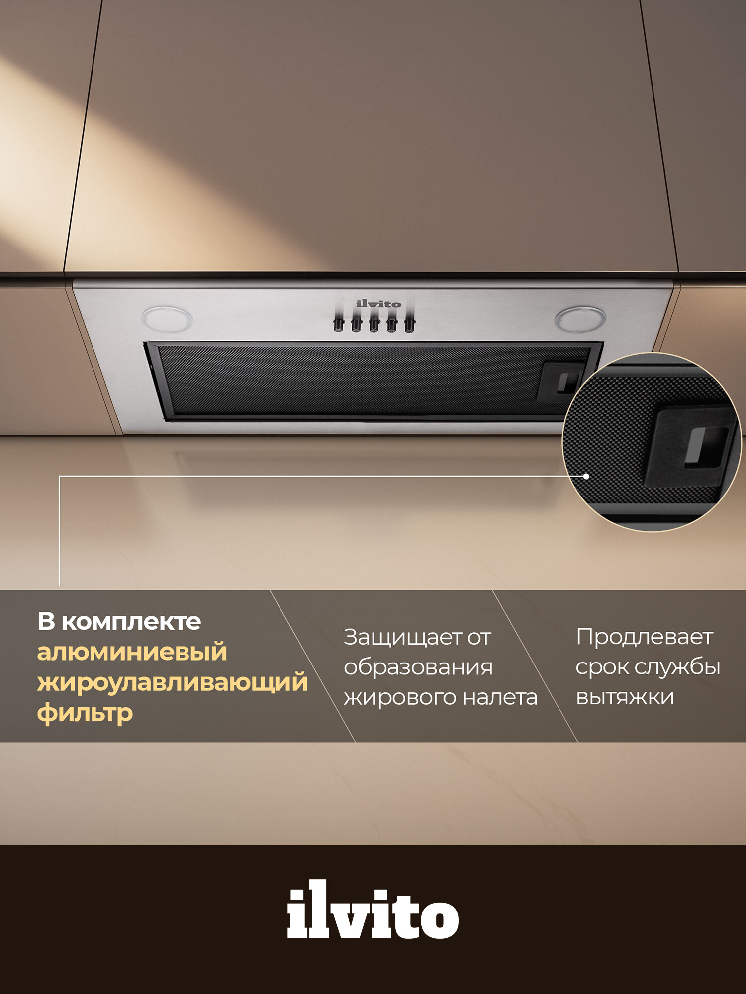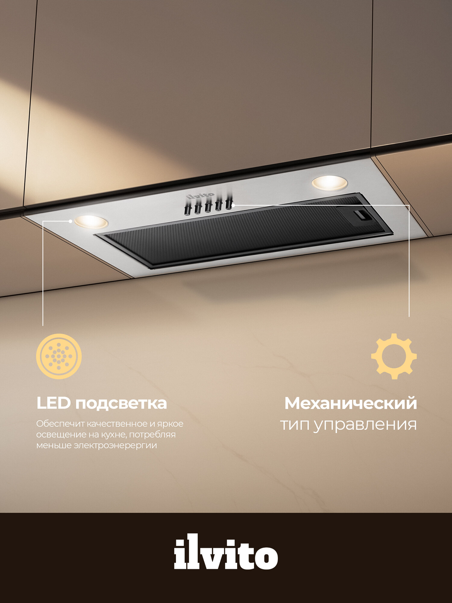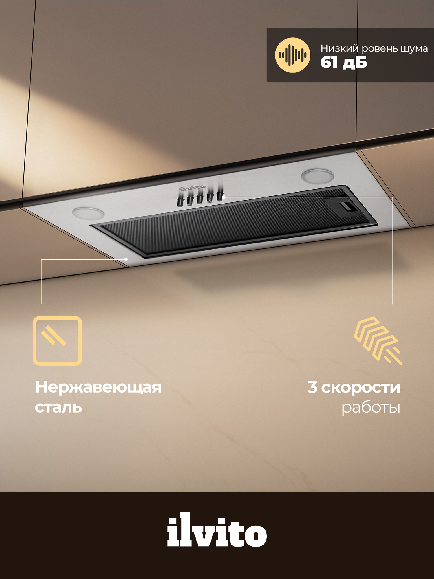 Купить Вытяжка для кухни встраиваемая ILVITO ICI Crespino IM 560, встраиваемая, 52 см, кухонная вытяжка, вытяжка на кухню с доставкой по всей России.