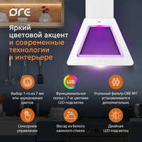 Кухонная вытяжка Ore Viking 60 SG WHITE это необычная модель, сочетающая в себе преимущества наклонных каминных вытяжек и т-образных классических решений. Современный дизайн с лаконичными стеклянным фасадом удачно впишется в интерьер самых современных кухонь, где правит стеклокерамика и каленое стекло. Функциональная полка с подсветкой позволит с удобством, не занимая пространства рабочей поверхности кухни, расположить специи или небольшие предметы интерьера. 7 цветов светодиодной подсветки помогут создать атмосферу комфорта. Подсветка имеет два режима работы: 1 из 7 цветов или их автоматическое чередование. Сочетание эффективного мотора производительностью 650 куб. м/ч с высокой отказоустойчивостью популярной стеклянной вытяжки уже стало визитной карточкой Ore.