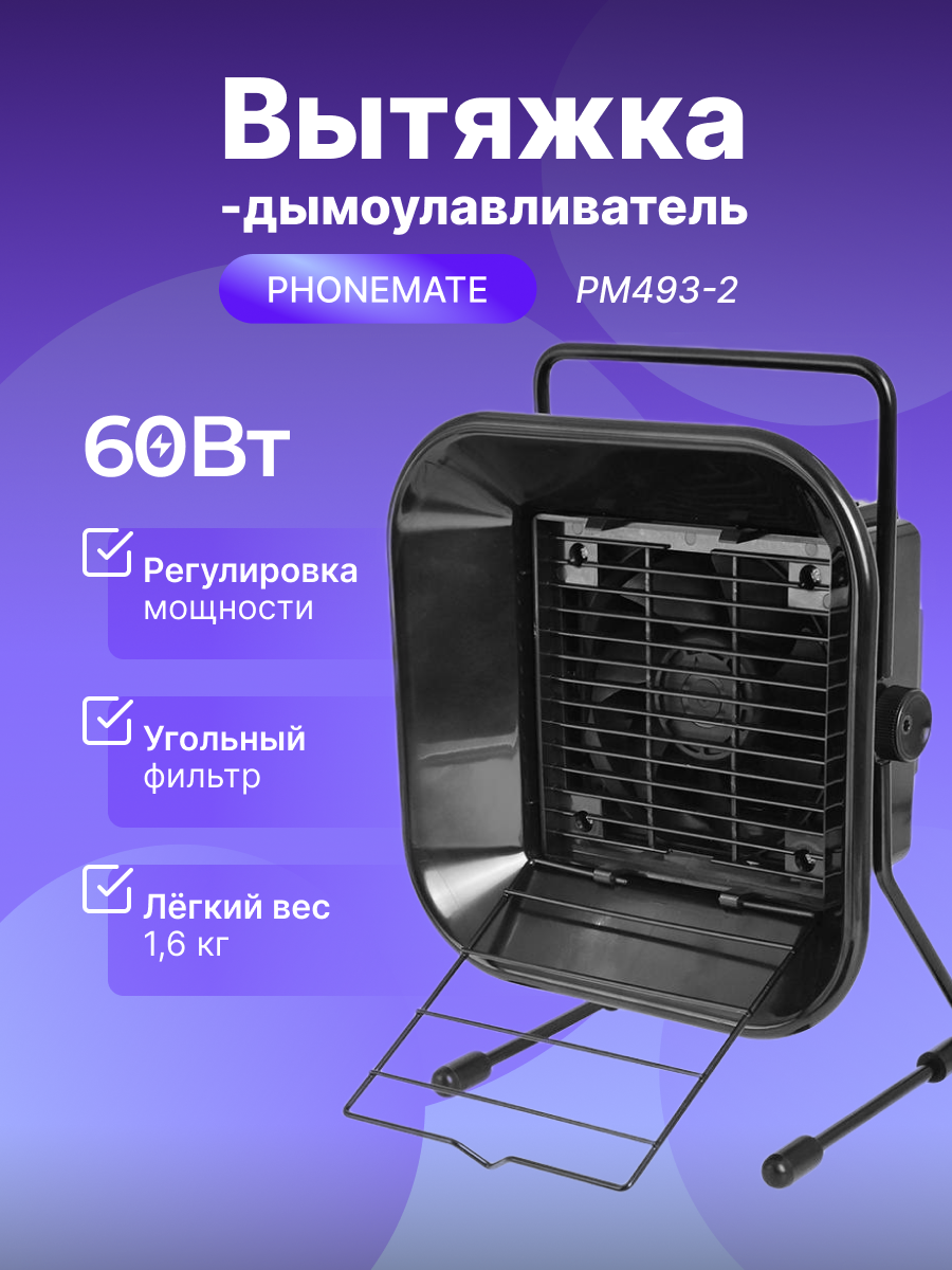 Вытяжка-дымоулавливатель Phonemate PM493-2 60Вт с регулировкой мощности, 60 Вт: сравнение цен, характеристики, фото, актуальное наличие и цены.