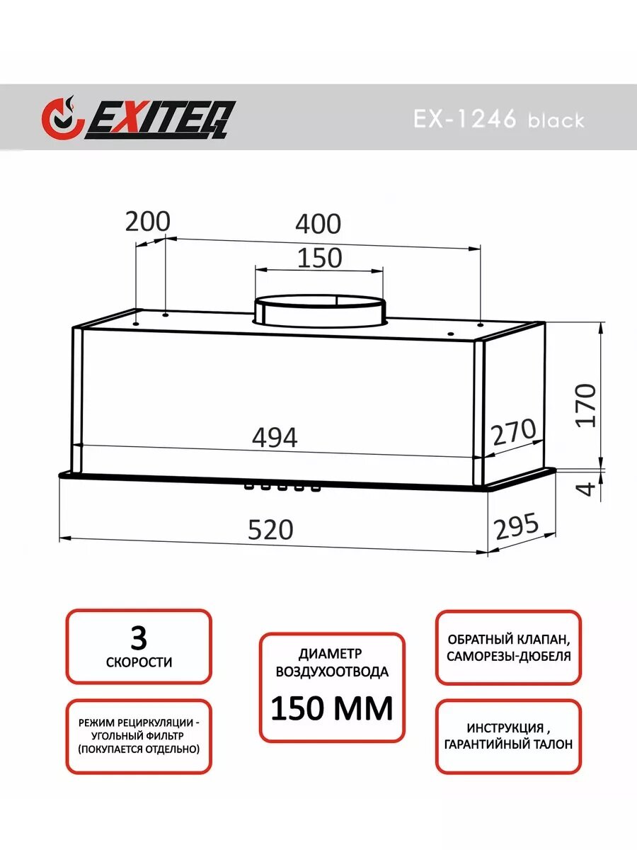 Встраиваемая вытяжка Exiteq EX-1246 black: сравнение цен, характеристики, фото, актуальное наличие и цены.