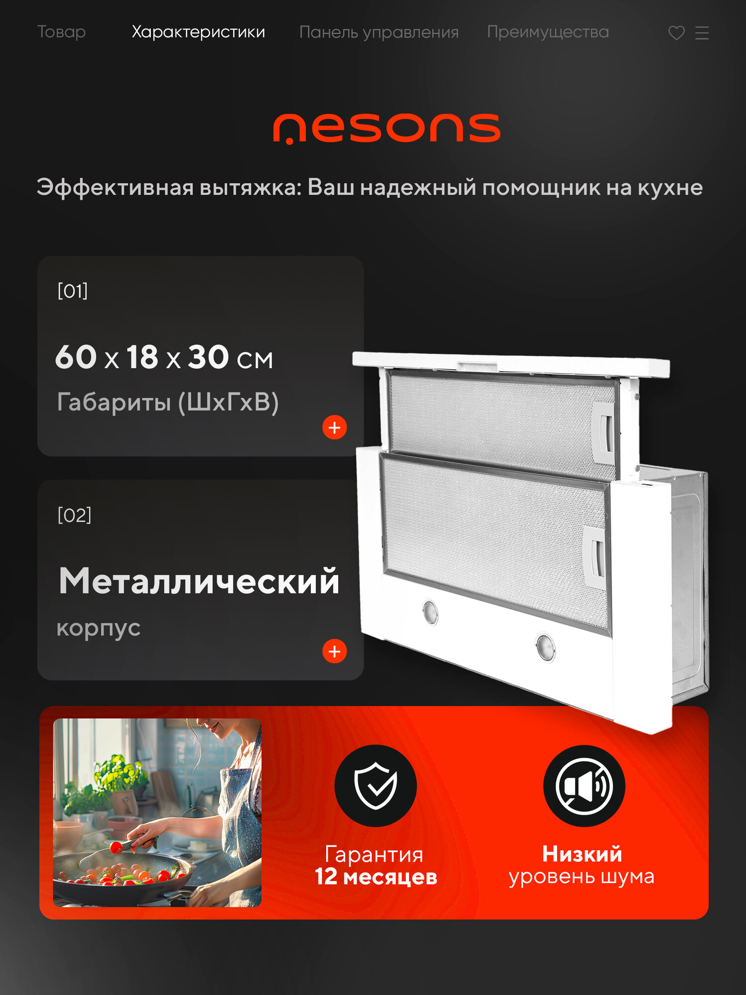 Вытяжка кухонная 60 см встраиваемая Nesons NS-THB450A WH белая: сравнение цен, характеристики, фото, актуальное наличие и цены.