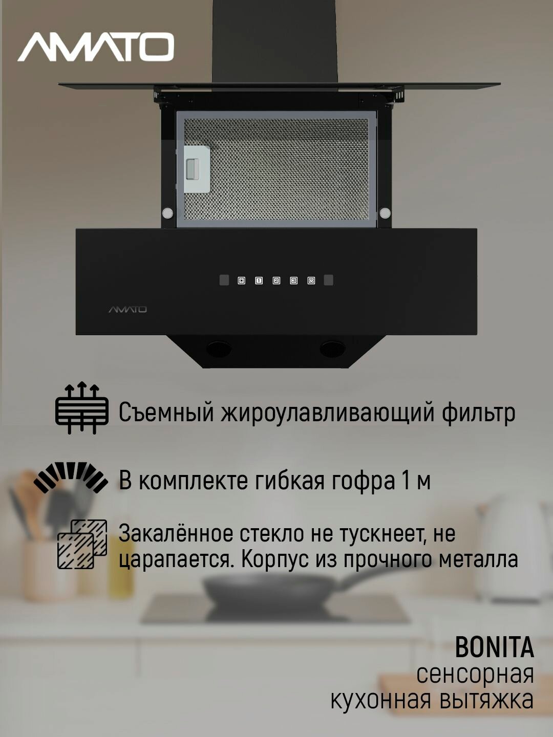 Купить Вытяжка кухонная BONITA с бесконтактным сенсором с доставкой по всей России.