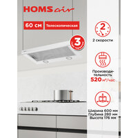 Вытяжка кухонная HOMSair FLAT 60 белый, встраиваемая, телескопическая, 2 скорости, 60 см