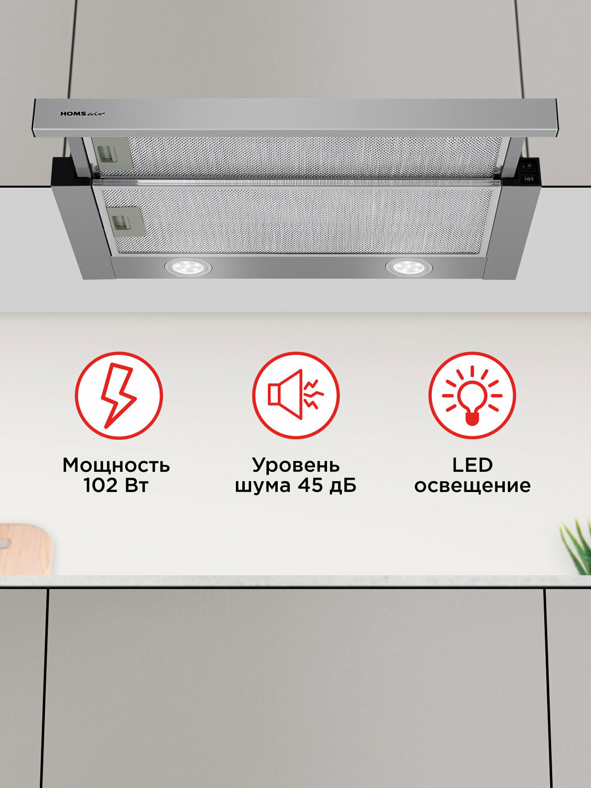 Вытяжка кухонная HOMSair FLAT 60 нержавеющая сталь, встраиваемая, телескопическая, 2 скорости, 60 см