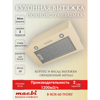 Вытяжка кухонная MACBI YANB-BOX60 (IVORY) слоновая кость, металл, 1200 м3/ч: сравнение цен, характеристики, фото, актуальное наличие и цены.