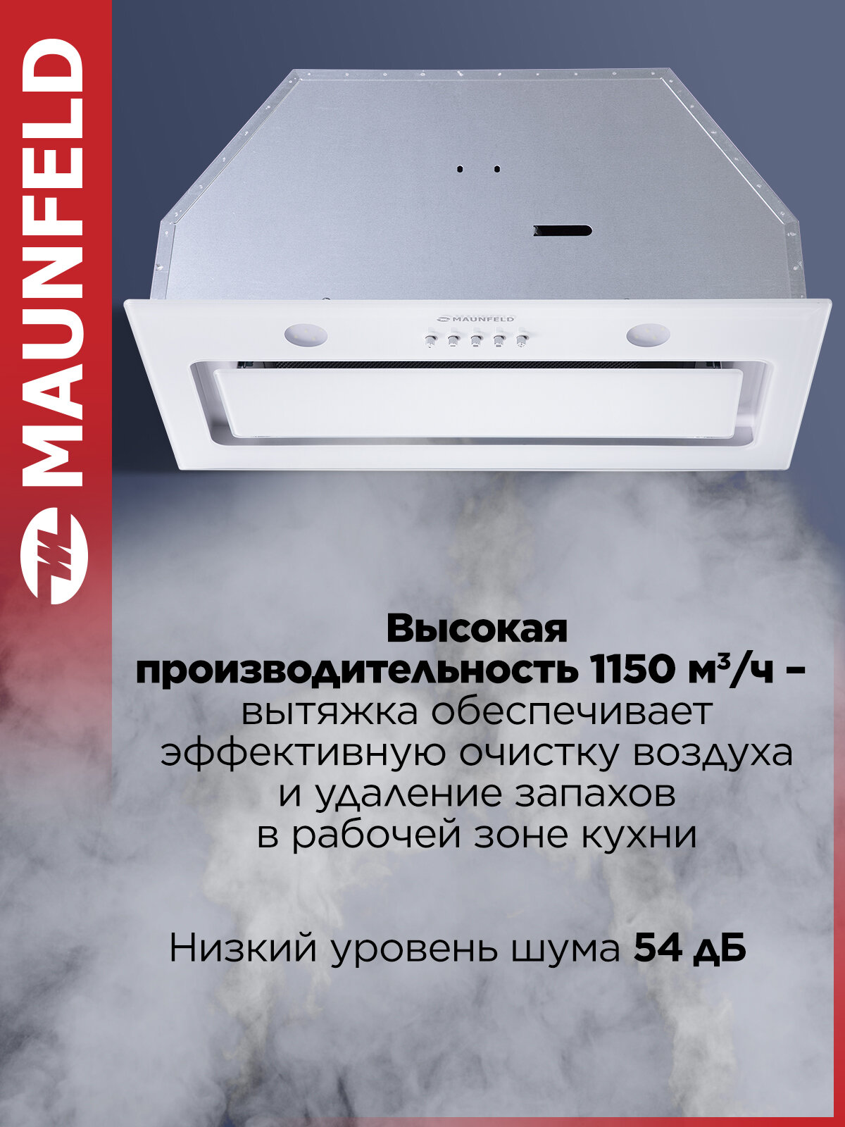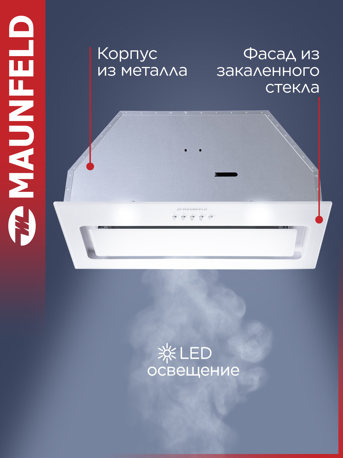 Вытяжка кухонная MAUNFELD TRAPEZE 601GG белый, встраиваемая 60 см, 1150 куб. м/ч, 54 дБ, 3 скорости: сравнение цен, характеристики, фото, актуальное наличие и цены.