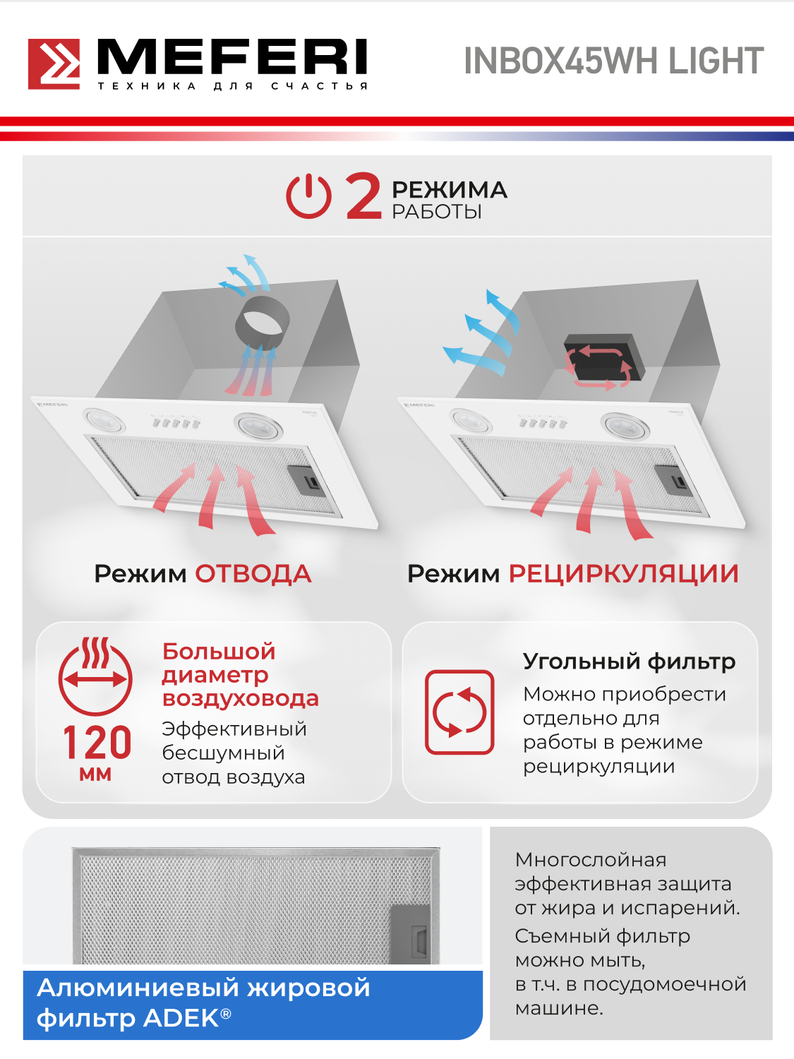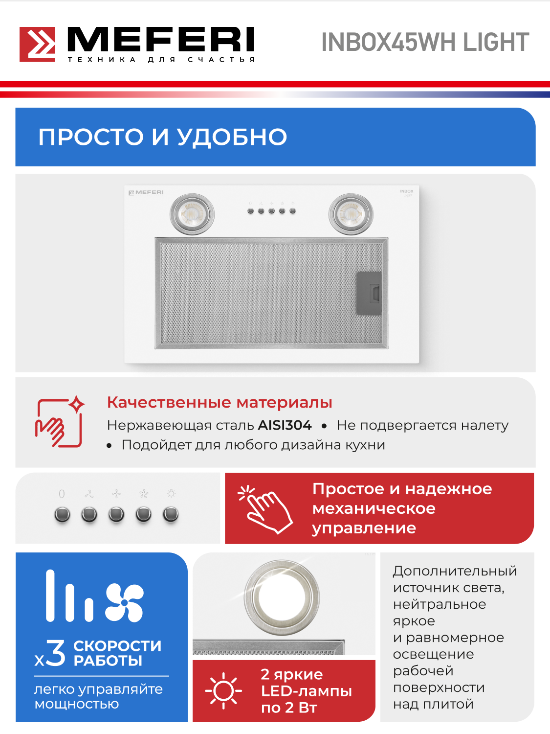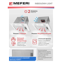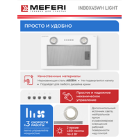 Вытяжка кухонная MEFERI INBOX45WH LIGHT на 45 см встраиваемая, белая, производительность 650 м3/ч, 3 скорости: сравнение цен, характеристики, фото, актуальное наличие и цены.