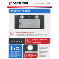 Купить Вытяжка кухонная MEFERI INBOX60BK LIGHT на 60 см встраиваемая, черная, производительность 650 м3/ч, 3 скорости с доставкой по всей России. Вытяжка кухонная MEFERI INBOX60BK LIGHT на 60 см встраиваемая, черная, производительность 650 м3/ч, 3 скорости: сравнение цен, характеристики, фото, актуальное наличие и цены.