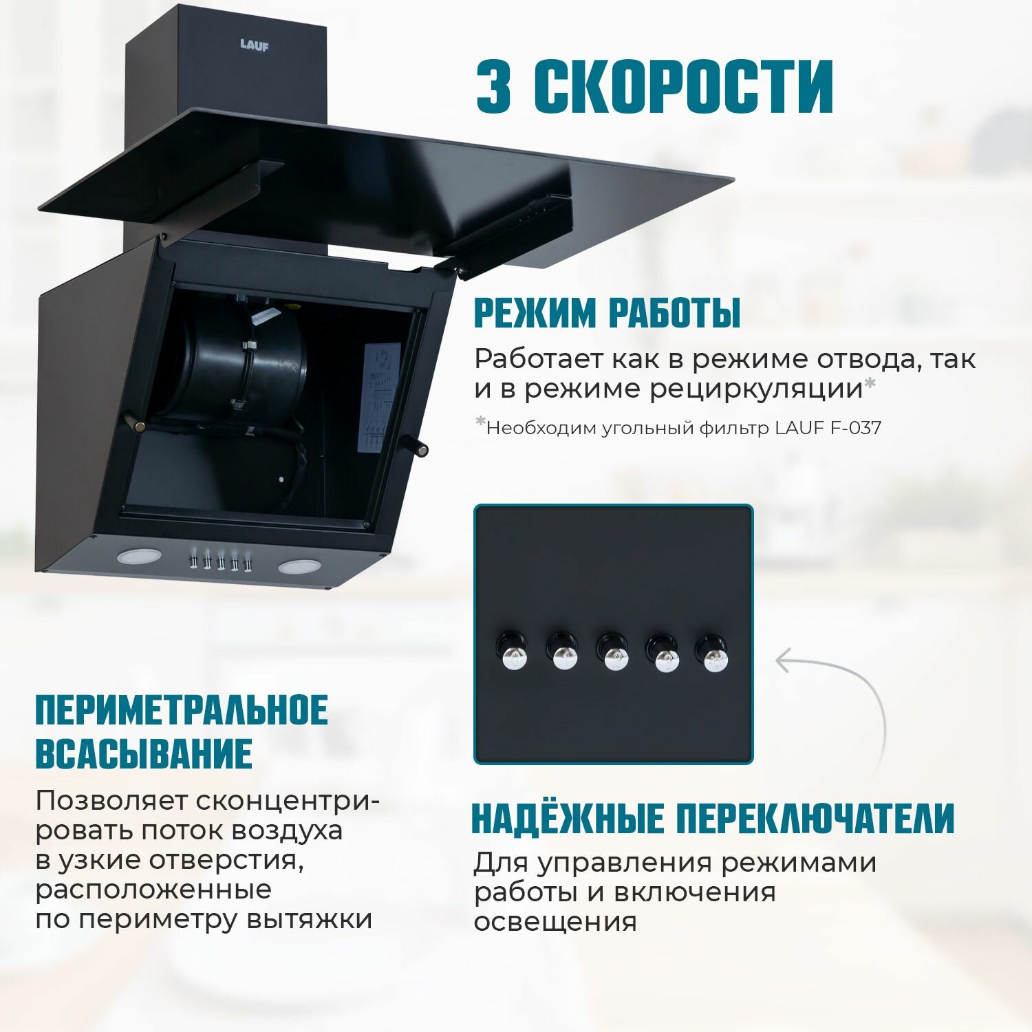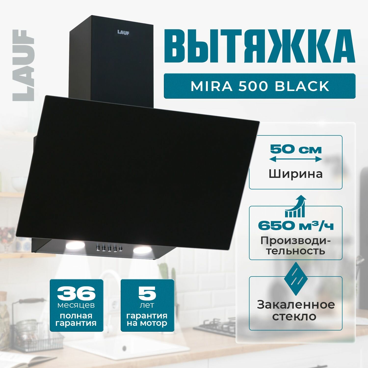 Вытяжка кухонная наклонная LAUF MIRA 500 BLACK/50 см/производительность 650м3/ч, низкий уровень шума.: сравнение цен, характеристики, фото, актуальное наличие и цены.