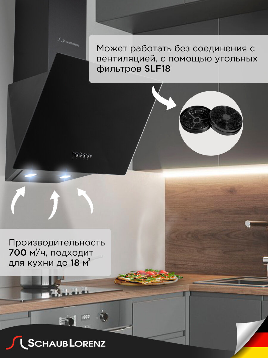 | Дополнительная информация | комплектация: алюминиевый жироулавливающий фильтр, комплект крепежных деталей, инструкция, гарантийный талон; приобретается отдельно: комплект угольных фильтров SLF18 |