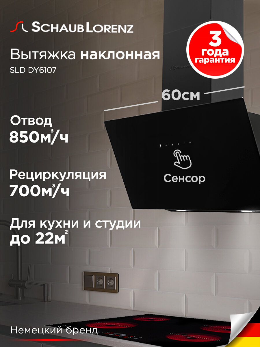 Вытяжка кухонная наклонная Schaub Lorenz SLD DY6107, сенсорное управление, черная: сравнение цен, характеристики, фото, актуальное наличие и цены.