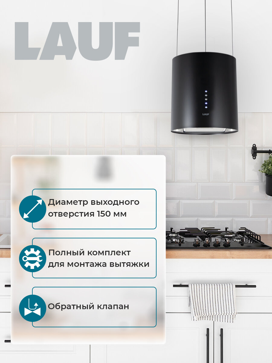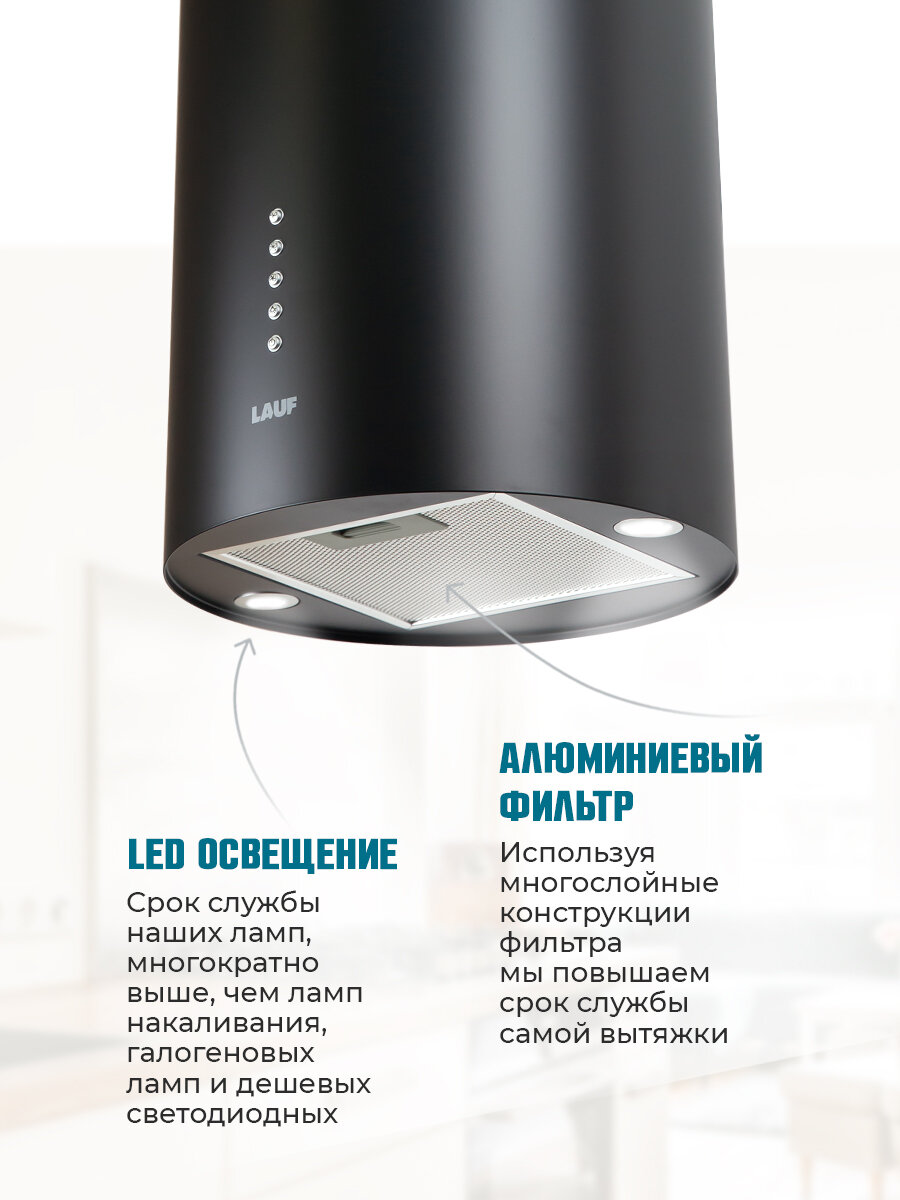 Купить Вытяжка кухонная островная LAUF MAIA 350 ISLAND BLACK/35 см/производительность 1030м3/ч, низкий уровень шума. с доставкой по всей России.