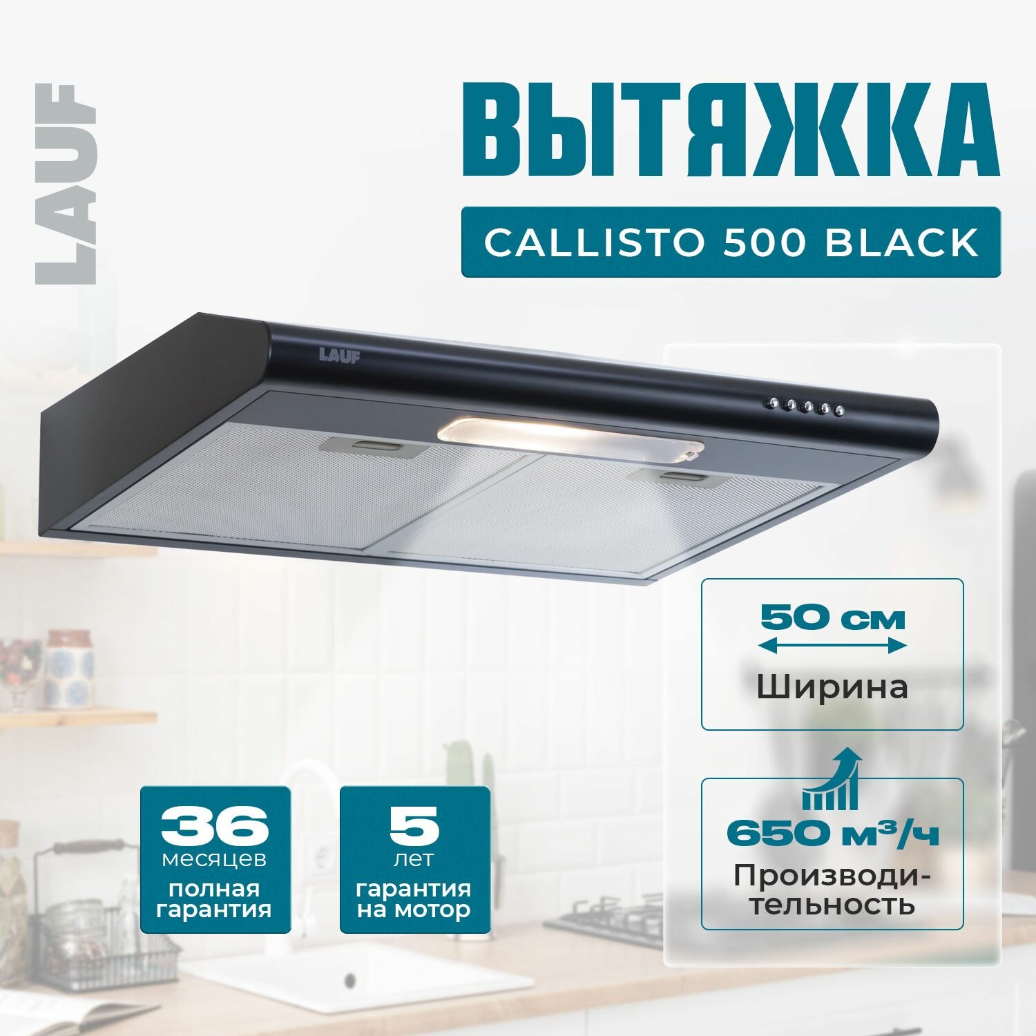 Купить Вытяжка кухонная подвесная LAUF CALLISTO 500 BLACK/50см/ производительность 650 м3/ч; LED подсветка/ обратный клапан/ низкий уровень шума с доставкой по всей России.