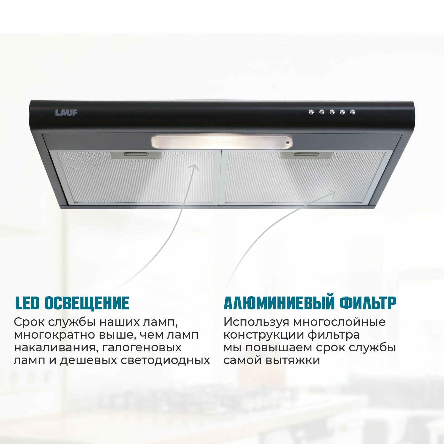 Купить Вытяжка кухонная подвесная LAUF CALLISTO 600 BLACK /60см/ производительность 650 м3/ч; LED подсветка. с доставкой по всей России.