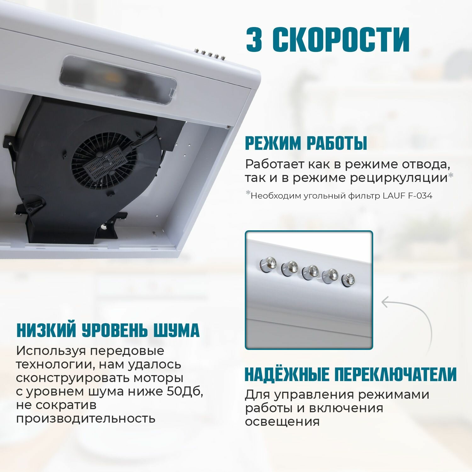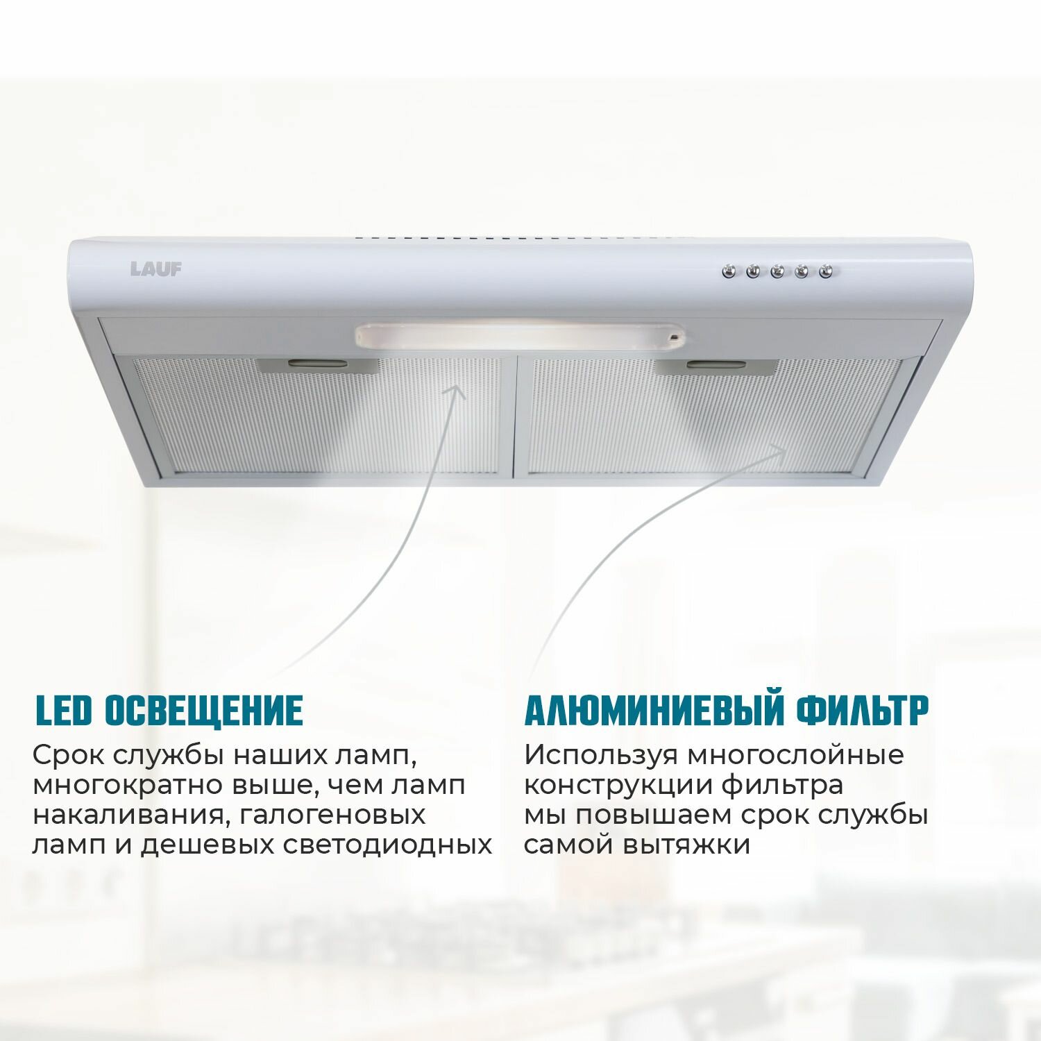 Купить Вытяжка кухонная подвесная LAUF CALLISTO 600 WHITE/60см/ производительность 650 м3/ч; LED подсветка/ обратный клапан/ низкий уровень шума с доставкой по всей России.