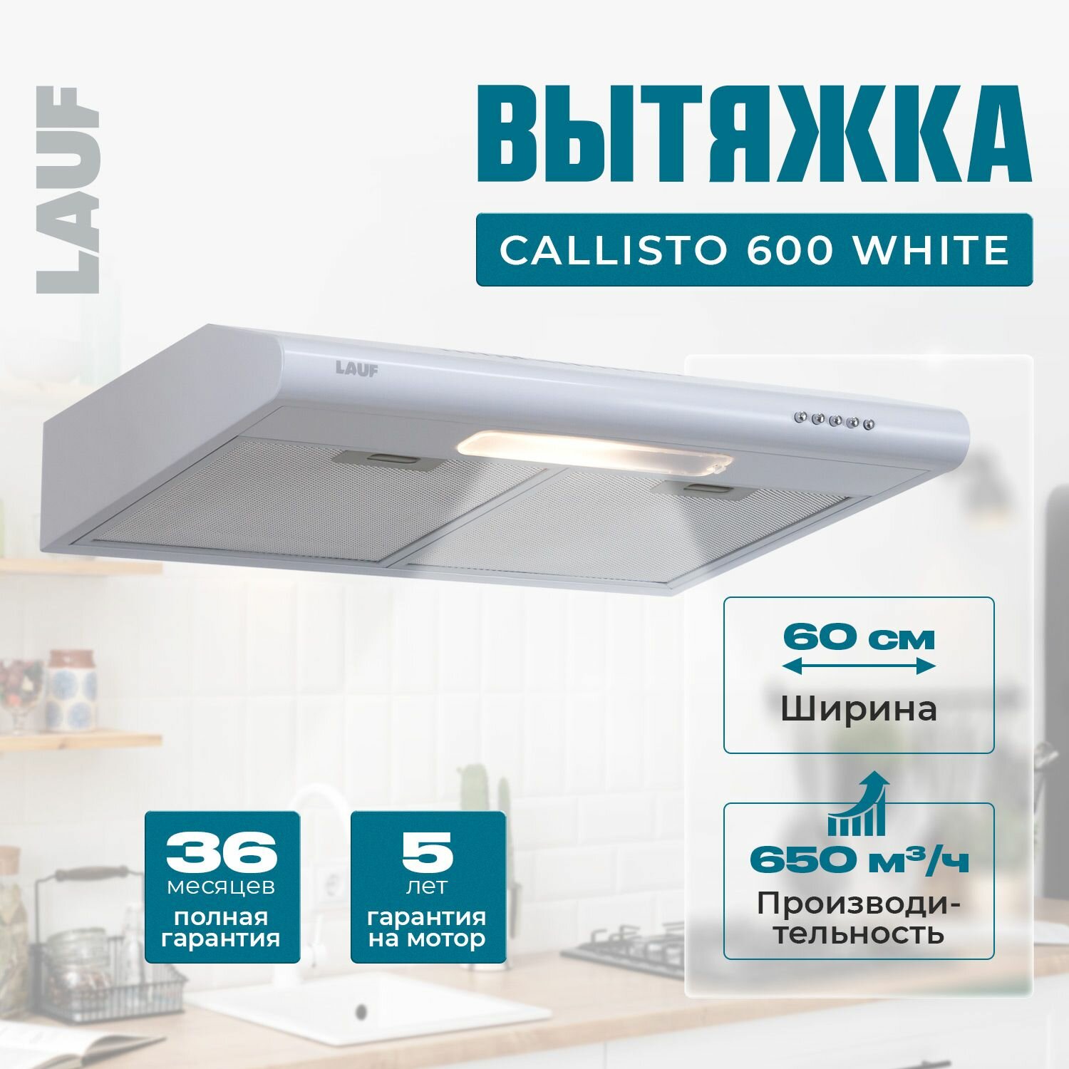 Вытяжка кухонная подвесная LAUF CALLISTO 600 WHITE/60см/ производительность 650 м3/ч; LED подсветка/ обратный клапан/ низкий уровень шума: сравнение цен, характеристики, фото, актуальное наличие и цены.