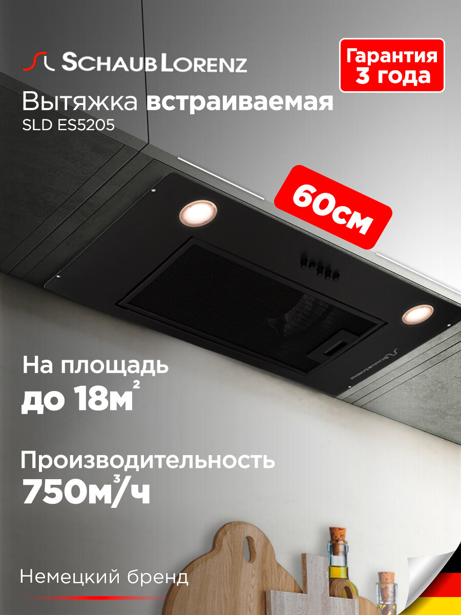 Вытяжка кухонная встраиваемая Schaub Lorenz SLD ES5205, черная, 3 режима: сравнение цен, характеристики, фото, актуальное наличие и цены.
