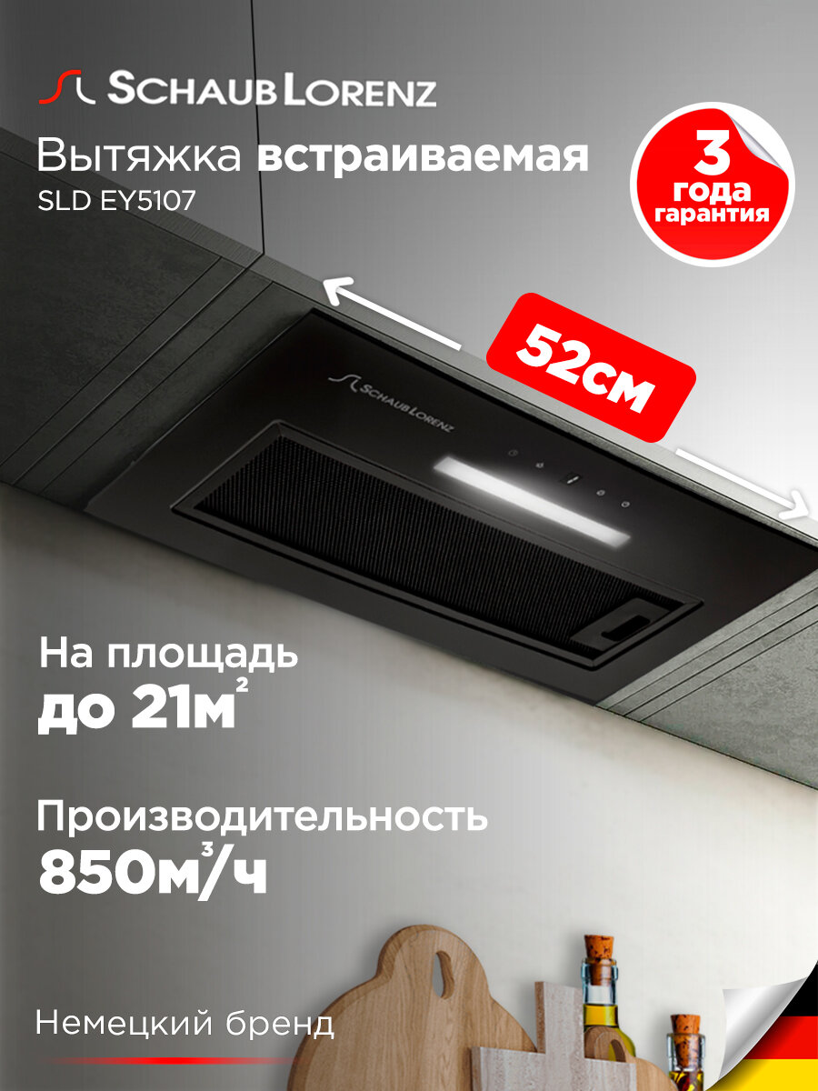 Купить Вытяжка кухонная встраиваемая Schaub Lorenz SLD EY5107, сенсорное управление, черная с доставкой по всей России.