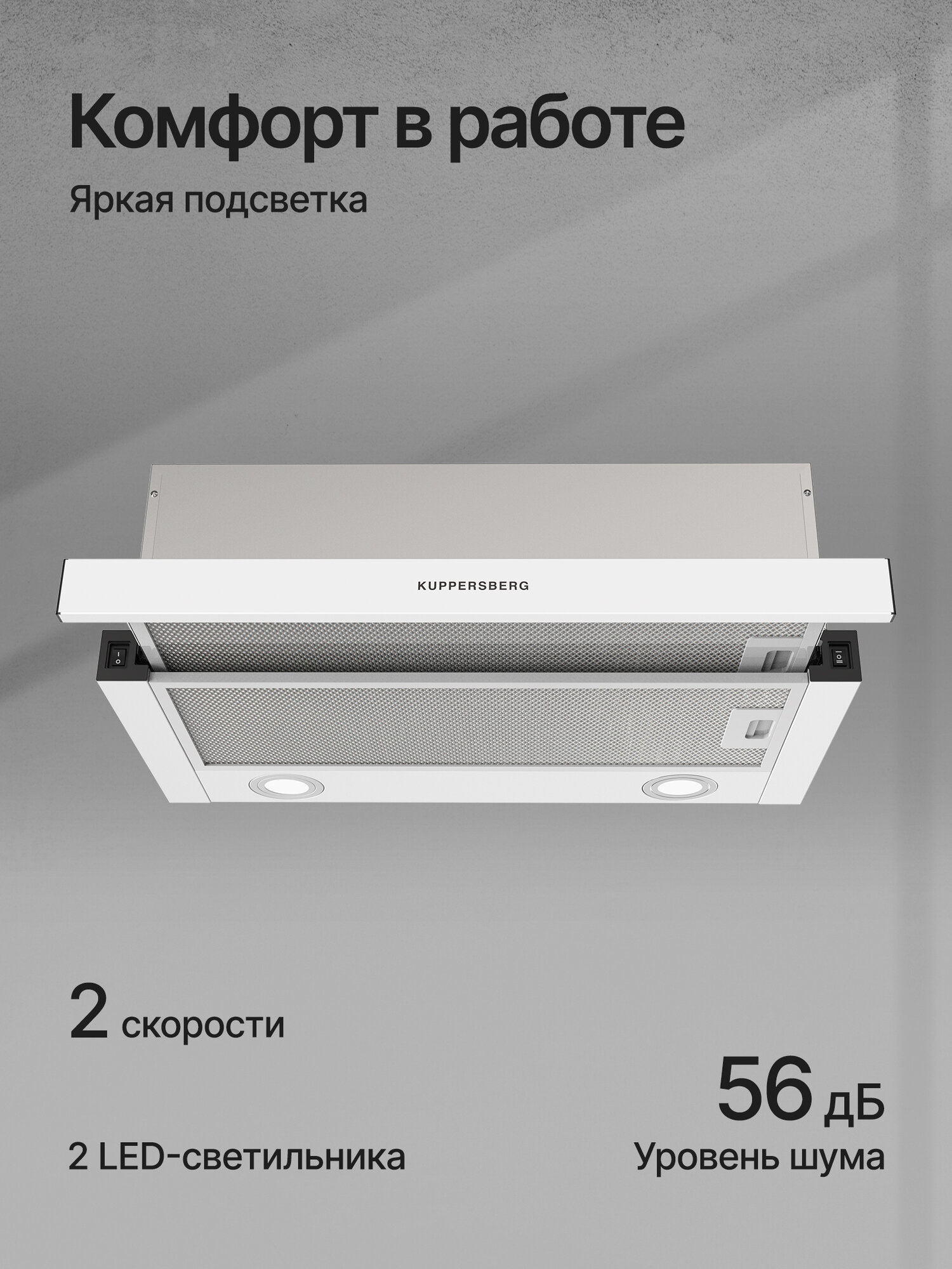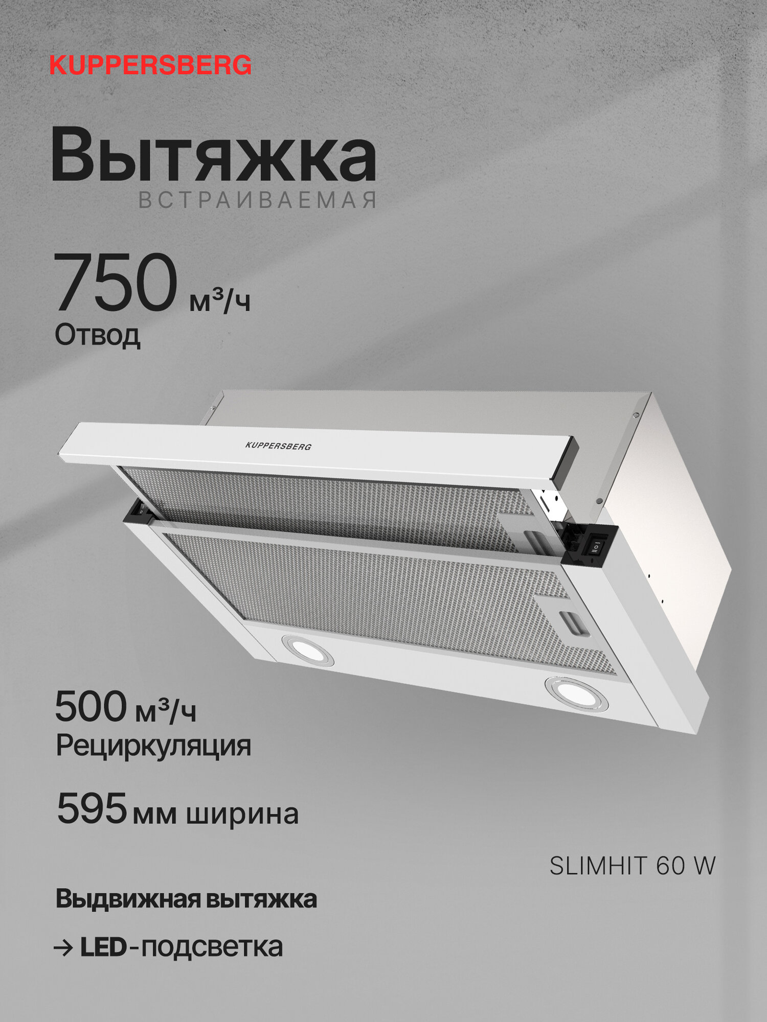 | Дополнительная информация | Вытяжка Kuppersberg SLIMHIT, встраиваемая, 65Вт, до 750куб.м/ч |