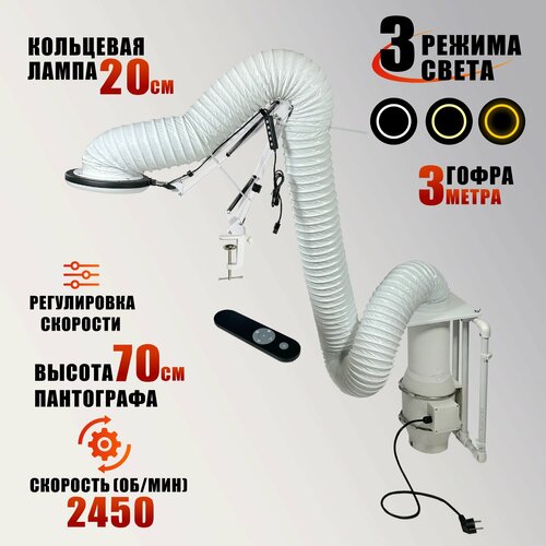 Косметологическая лампа маникюрная с вытяжкой и с подсветкой LED предназначена для обеспечения качественного освещения и чистоты при проведении косметологических процедур, таких как оформление бровей, наращивание ресниц, маникюр и т. п. Зажим позволяет прикрепить лампу к горизонтальной поверхности толщиной до 50 мм, что позволит освободить ваши руки и место на рабочем столе. Используется в косметологии, в тату салонах, салонах красоты, а также там, где требуется подсветка рабочего поля. Лампа с вытяжкой маникюрная позволяет проводить процедуры комфортно и без лишних запахов и пыли. Вытяжка - это помощник всех мастеров красоты, она позволяет минимизировать запахи, например, от клея, а также избавиться от небольших пыльных загрязнений. Вытяжка для маникюра играет важную роль в поддержании чистоты и безопасности рабочего места мастера и комфорта для клиента. Лампа для маникюра с пылесосом позволяет делать маникюр непосредственно над вытяжкой, что сделает ваше рабочее пространство чище.