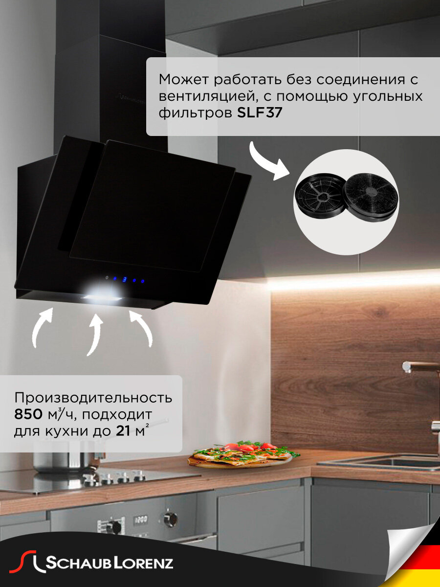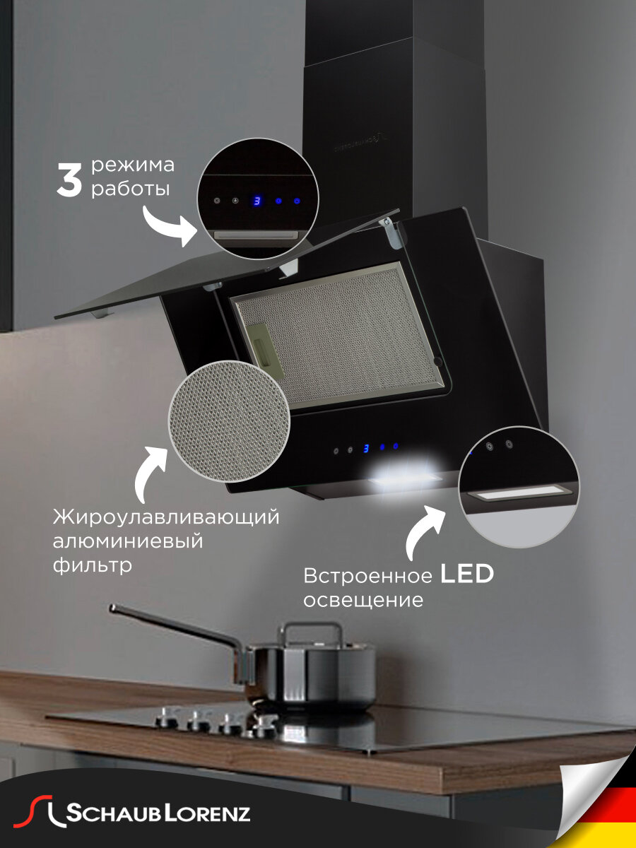 Вытяжка кухонная наклонная Schaub Lorenz SLD DY6420, 60 см, черное стекло