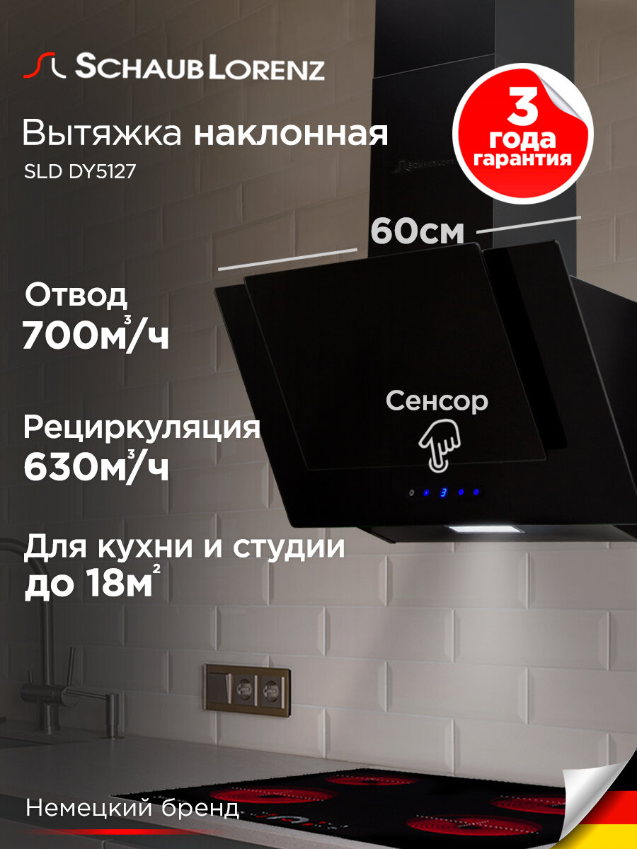 Вытяжка наклонная кухонная Schaub Lorenz SLD DY5127, 60 см, двойное стекло: сравнение цен, характеристики, фото, актуальное наличие и цены.
