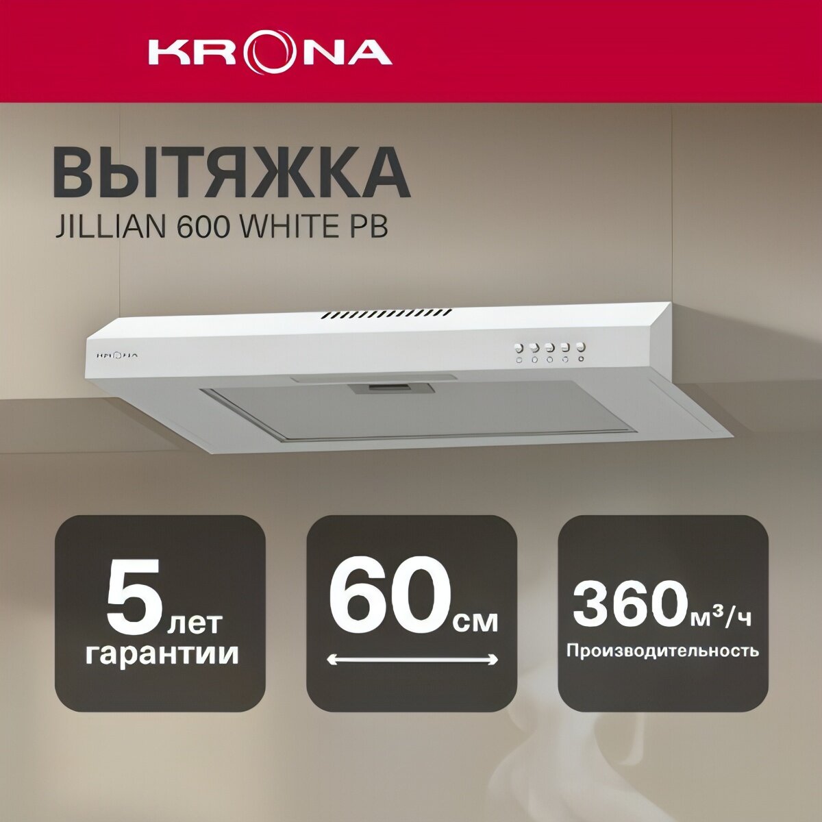 Вытяжка плоская Krona JILLIAN 600 white PB: сравнение цен, характеристики, фото, актуальное наличие и цены.