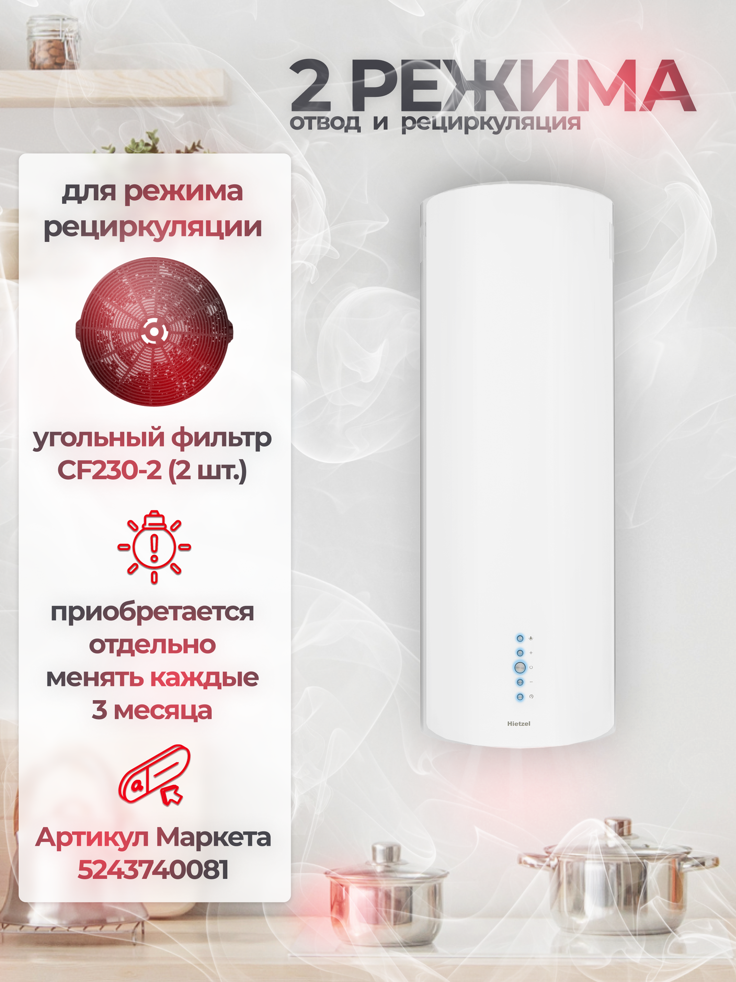 | Дополнительная информация | комплектация: кухонная вытяжка, антивозвратный клапан (уже установлен или нужно будет собрать), крепеж (внутри вытяжки), алюминиевый жироулавливающий фильтр (уже установлен), руководство пользователя |