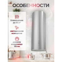 Купить Вытяжка цилиндрическая для кухни серая Hietzel CHW 3509E IX с доставкой по всей России.