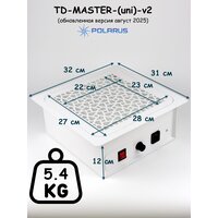Пылесос имеет самый тонкий корпус среди конкурентов и почти не занимает место под столом, что очень здорово - так как для ног мастера останется много свободного места, высота блока с вентилятором и фильтрами всего 125мм (из них под столом пылесос будет занимать места в среднем не больше 9см!). Большую часть этого пространства занимает мощная турбина диаметром 190мм, которая создаёт сильное разрежения воздуха под блоком фильтров, что обеспечивает потрясающую мощность всасывания пыли.